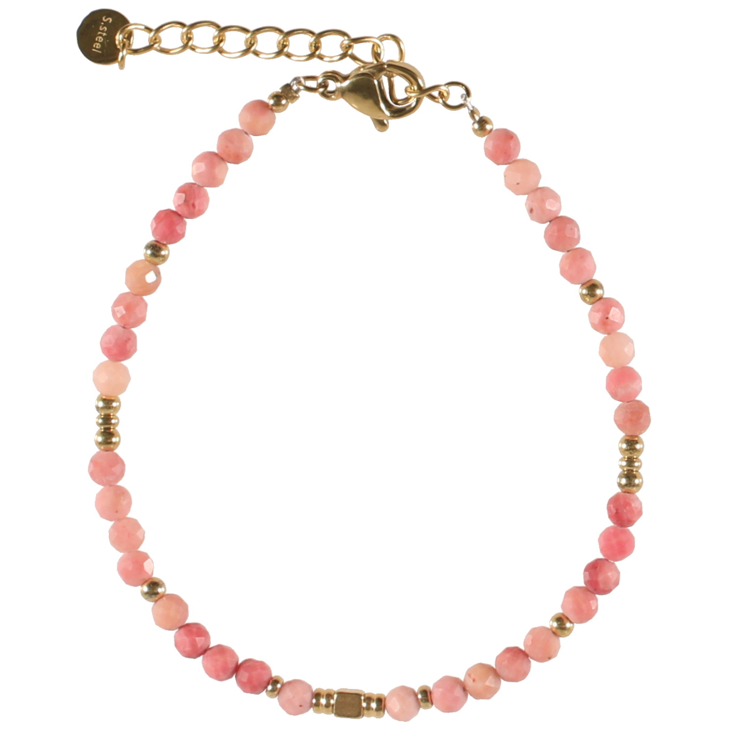 Description Bracelet composé de perles en véritable pierre de rhodonite et de perles en acier doré. Fermoir mousqueton avec 3 cm de rallonge. Cliquez sur une matière, un thème, une couleur ou une collection pour voir tous les articles associés.