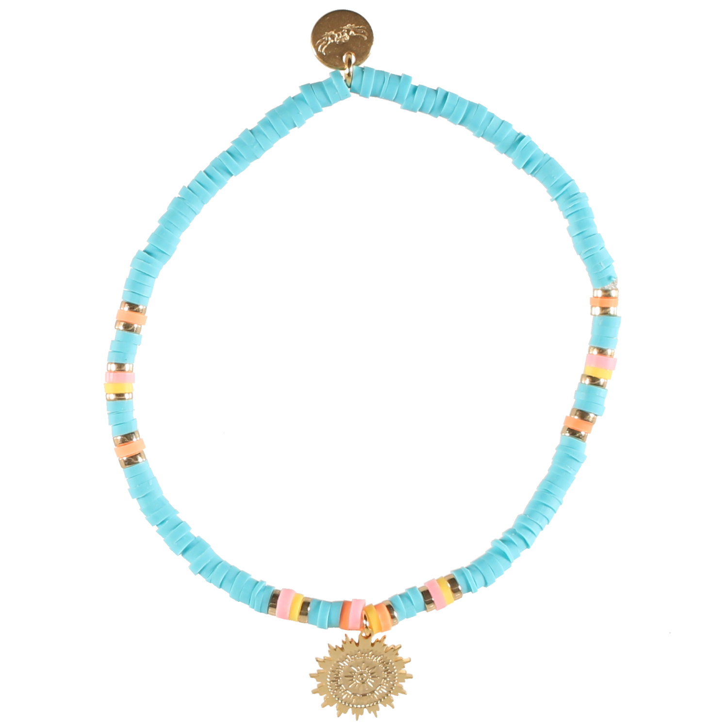 Description Bracelet élastique composé de perles heishi en acier doré et en caoutchouc multicolore et d'un pendant en forme de soleil en acier doré. Longueur 17 cm [Guide des tailles] Largeur 4 mm Matière(s) Acier , Caoutchouc . L'acier utilisé dans la bijouterie existe sous plusieurs qualités. Nous utilisons principalement la qualité 316L, qualité qui est utilisée en chirurgie. Cet acier est donc inoxydable et reste très résistant. Fermoir Aucun À noter Pendant 12 mm de diamètre Couleur(s) dominante(s) Bleu , Doré Public Adolescent , Adulte . Genre Femme , Fille . Saison Indémodable . Thème(s) Nature . Collection Heishi Cliquez sur une matière, un thème, une couleur ou une collection pour voir tous les articles associés.