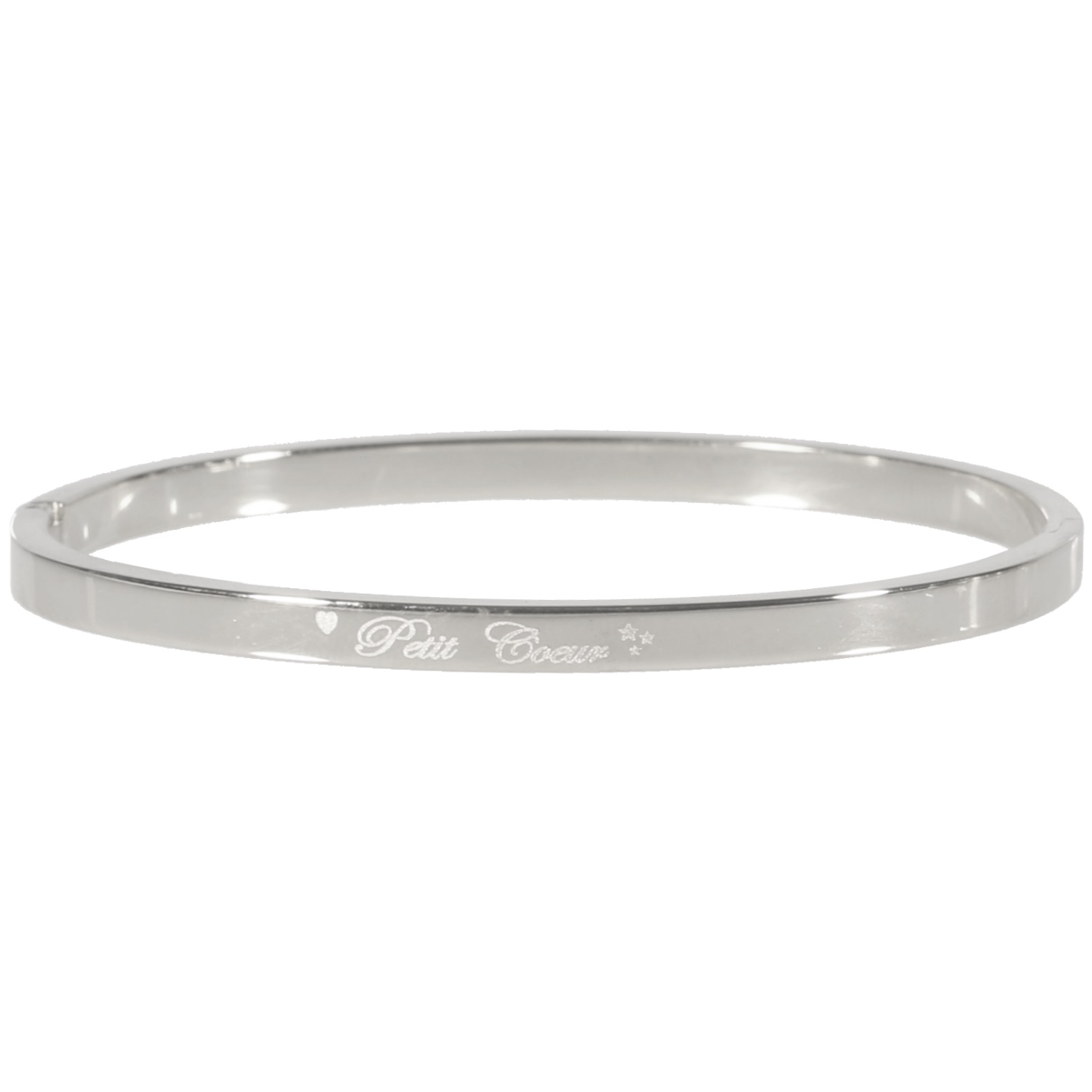 Description Bracelet jonc en acier argenté avec cœur et étoiles et le message Petit Coeur. Largeur 4 mm Diamètre 60 mm [Guide des tailles] Matière(s) Acier . L'acier utilisé dans la bijouterie existe sous plusieurs qualités. Nous utilisons principalement la qualité 316L, qualité qui est utilisée en chirurgie. Cet acier est donc inoxydable et reste très résistant. Fermoir Charnière Couleur(s) dominante(s) Argenté Public Adolescent , Adulte . Genre Femme , Fille . Saison Indémodable . Thème(s) Amour , Message . Cliquez sur une matière, un thème, une couleur ou une collection pour voir tous les articles associés.