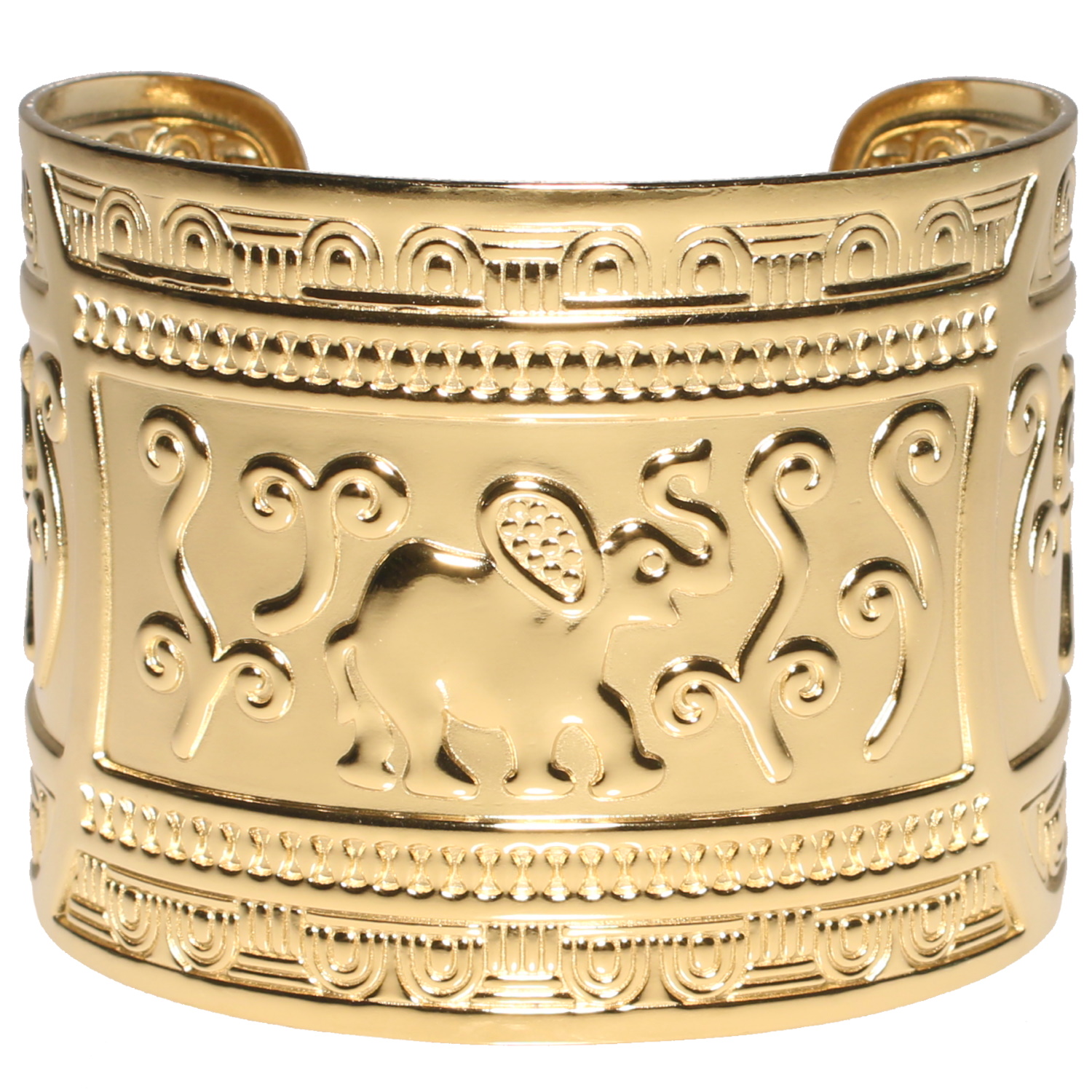 Description Bracelet manchette avec motifs indiens et dessin d'éléphant en acier doré. Largeur 53 mm Diamètre 64 mm [Guide des tailles] Matière(s) Acier . L'acier utilisé dans la bijouterie existe sous plusieurs qualités. Nous utilisons principalement la qualité 316L, qualité qui est utilisée en chirurgie. Cet acier est donc inoxydable et reste très résistant. Fermoir Aucun Couleur(s) dominante(s) Doré Public Adolescent , Adulte . Genre Femme , Fille . Saison Indémodable . Thème(s) Animaux . Rayon en magasin T6 Cliquez sur une matière, un thème, une couleur ou une collection pour voir tous les articles associés.