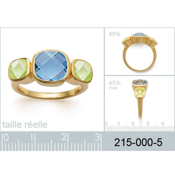 Pierre centrale 12x10mm et pierres latérales 7x7 mm environ.