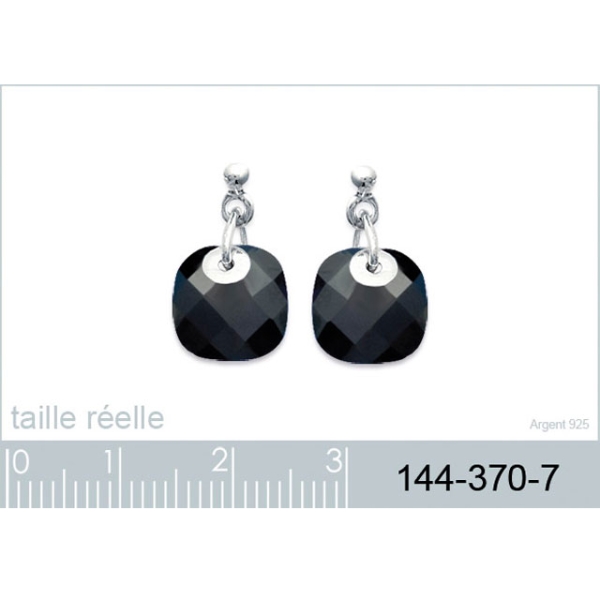 Boucles d'oreilles en argent 925/000 rhodié et pierres synthétiques.