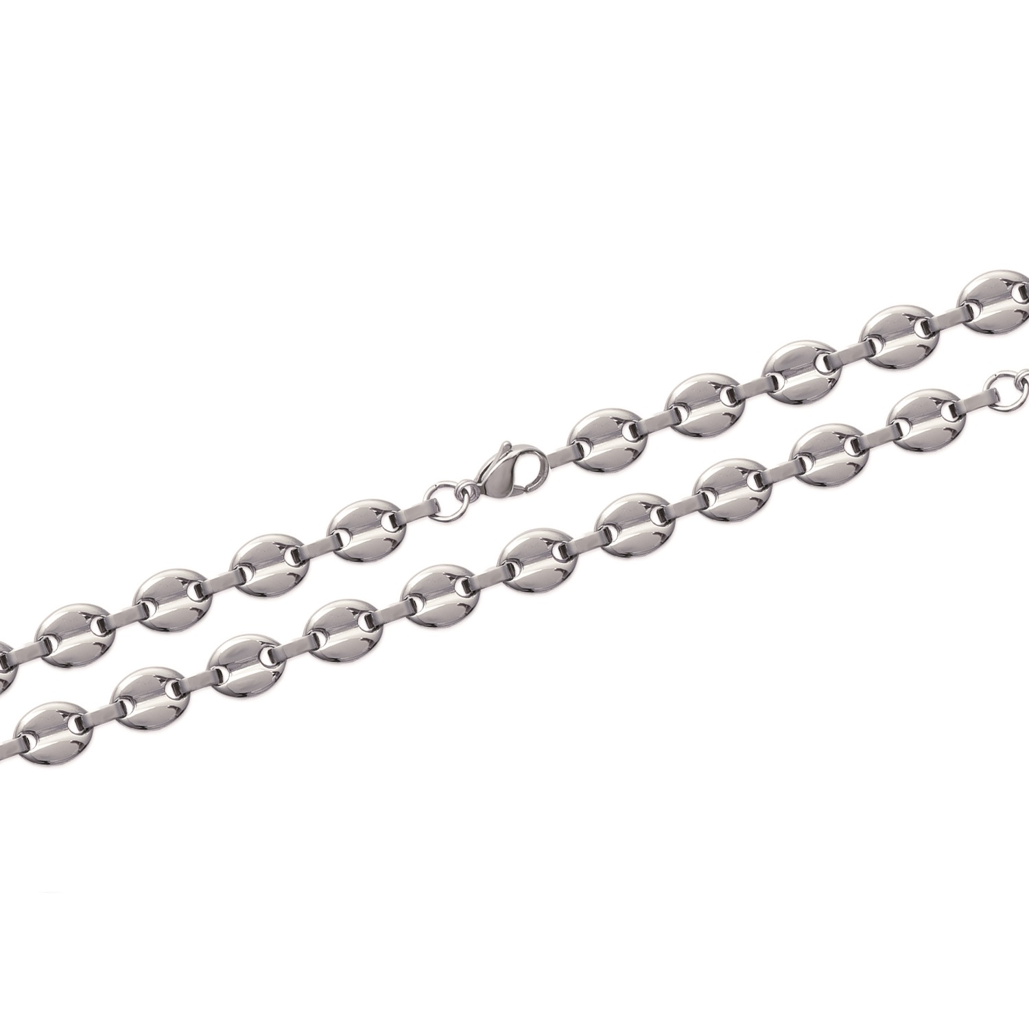 Description Bracelet en acier. Maille grain de café. Longueur 22 cm [Guide des tailles] Largeur 10 mm Matière(s) Acier . L'acier utilisé dans la bijouterie existe sous plusieurs qualités. Nous utilisons principalement la qualité 316L, qualité qui est utilisée en chirurgie. Cet acier est donc inoxydable et reste très résistant. Fermoir Mousqueton Couleur(s) dominante(s) Argenté Public Adulte . Genre Homme . Saison Indémodable . Rayon en magasin T41 Cliquez sur une matière, un thème, une couleur ou une collection pour voir tous les articles associés.