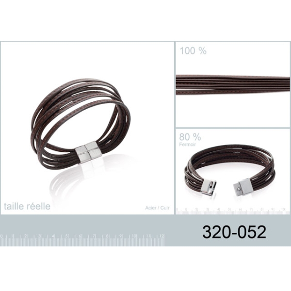 Description Bracelet en acier et cuir. Longueur 19 cm [Guide des tailles] Largeur 11 mm Matière(s) Acier , Cuir . L'acier utilisé dans la bijouterie existe sous plusieurs qualités. Nous utilisons principalement la qualité 316L, qualité qui est utilisée en chirurgie. Cet acier est donc inoxydable et reste très résistant. Fermoir A pression Couleur(s) dominante(s) Marron Public Adulte . Genre Femme . Saison Indémodable . Cliquez sur une matière, un thème, une couleur ou une collection pour voir tous les articles associés.