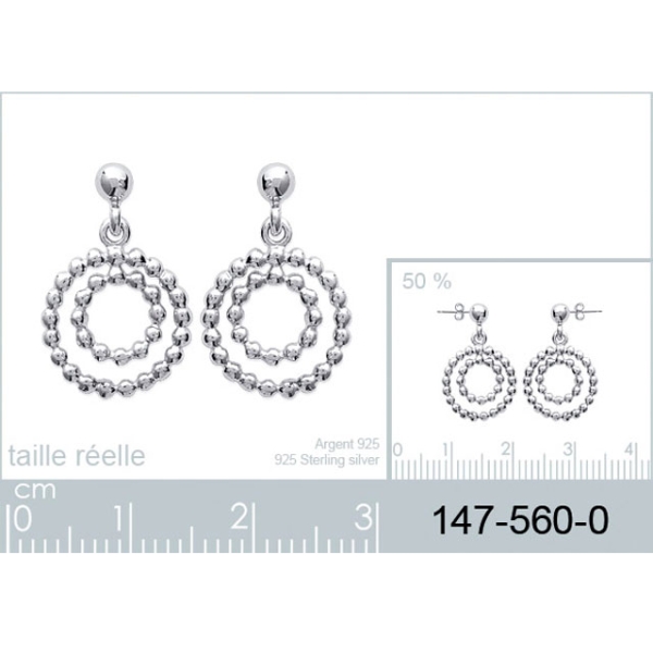 Description Boucles d'oreilles en argent 925/000. Hauteur 18 mm Diamètre 12 mm Matière(s) Argent 925 . Les bijoux en argent que nous vous proposons sont faits d'argent 925/000. C'est-à-dire que chaque gramme de métal est composé de 92.5% d'argent pur et de 7.5 % d'autres métaux (essentiellement du cuivre). En effet, sous sa forme pure (soit 100%), l'argent est trop mou et ne peut être suffisamment rigide pour tenir sous forme de bijou. Nous le mêlons donc à d'autres métaux. Nous apposons un poinçon 925 sur tous nos bijoux afin de vous garantir que chaque création est bien en argent 925. Poids d'argent 2,09 gramme(s) Fermoir Tiges poussettes Couleur(s) dominante(s) Argenté Public Adulte . Genre Femme . Saison Indémodable . Cliquez sur une matière, un thème, une couleur ou une collection pour voir tous les articles associés.
