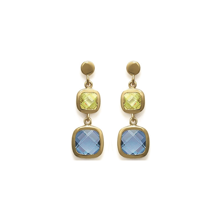 Boucles d'oreilles en plaqué-or et pierres synthétiques. Carré  Adulte Femme Indémodable