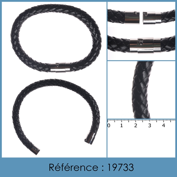 Description Bracelet en acier et cuir. Longueur 21 cm [Guide des tailles] Largeur 8 mm Matière(s) Acier , Cuir . L'acier utilisé dans la bijouterie existe sous plusieurs qualités. Nous utilisons principalement la qualité 316L, qualité qui est utilisée en chirurgie. Cet acier est donc inoxydable et reste très résistant. Fermoir Aimants Couleur(s) dominante(s) Noir Public Adulte . Genre Homme . Saison Indémodable . Cliquez sur une matière, un thème, une couleur ou une collection pour voir tous les articles associés.