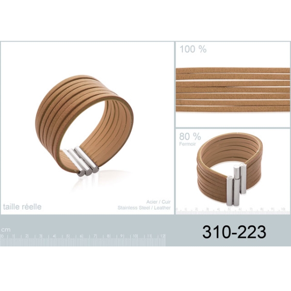 Description Bracelet en cuir. Longueur 19 cm [Guide des tailles] Largeur 32 mm Matière(s) Acier , Cuir . L'acier utilisé dans la bijouterie existe sous plusieurs qualités. Nous utilisons principalement la qualité 316L, qualité qui est utilisée en chirurgie. Cet acier est donc inoxydable et reste très résistant. Fermoir Autre Couleur(s) dominante(s) Marron Public Adulte . Genre Femme . Saison Indémodable . Cliquez sur une matière, un thème, une couleur ou une collection pour voir tous les articles associés.