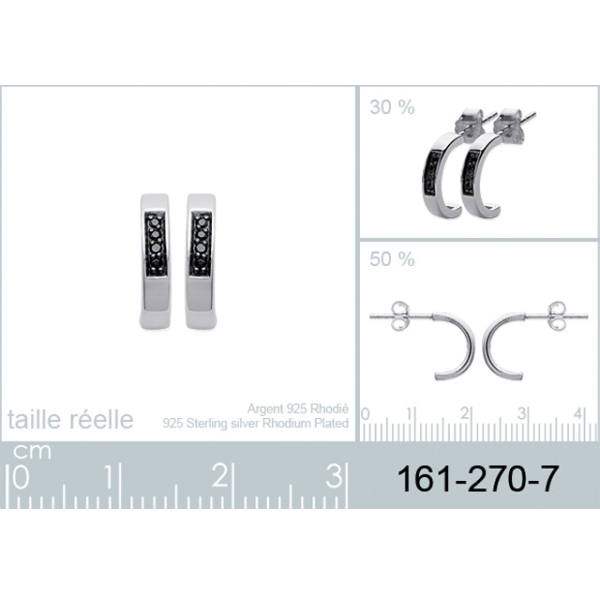 Boucles d'oreilles créoles en argent 925/000 rhodié et pierres synthétiques.
