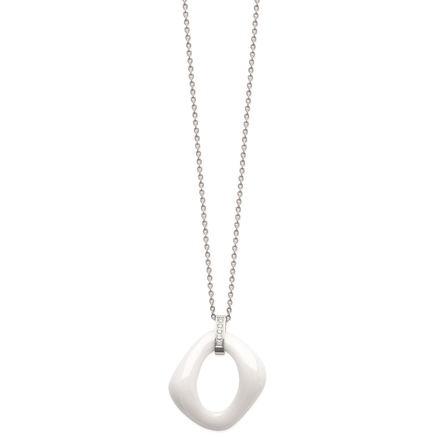 Collier en acier avec pendentif en céramique blanche et bélière sertie d'oxydes de zirconium blanc.