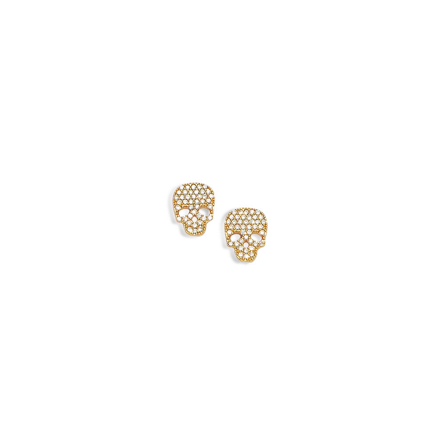 Boucles d'oreilles en plaqué or et oxyde de zirconium. Tête de mort  Adulte Femme Indémodable Personnage Symboles