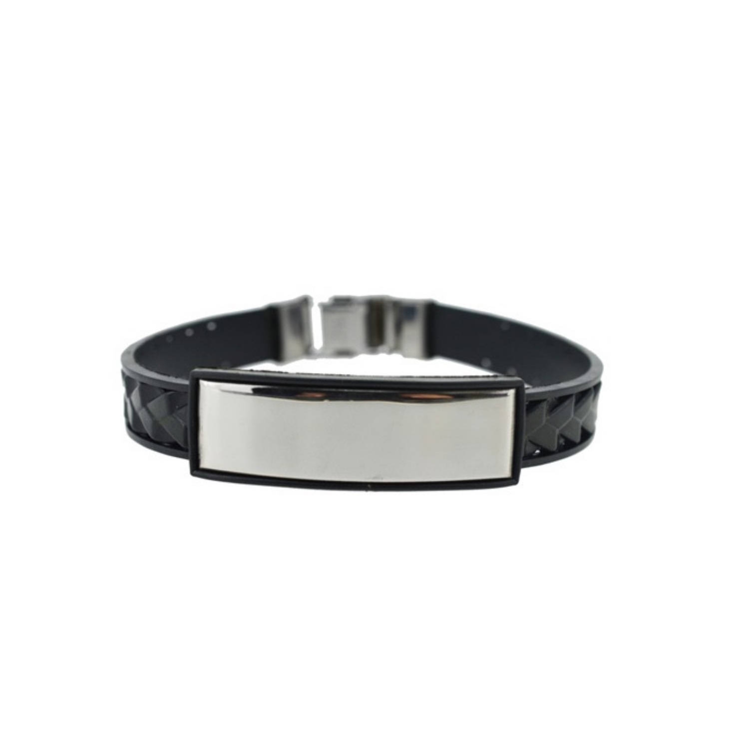Bracelet fantaisie en acier et caoutchouc.