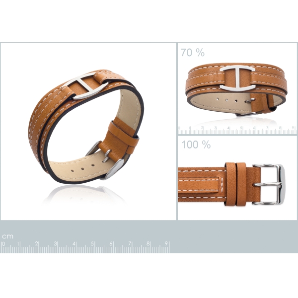 Description Bracelet en acier et cuir. Longueur 19 cm [Guide des tailles] Largeur 18 mm Matière(s) Acier , Cuir . L'acier utilisé dans la bijouterie existe sous plusieurs qualités. Nous utilisons principalement la qualité 316L, qualité qui est utilisée en chirurgie. Cet acier est donc inoxydable et reste très résistant. Fermoir Ceinture Couleur(s) dominante(s) Marron Public Adulte . Genre Femme . Saison Indémodable . Collection Parisienne Cliquez sur une matière, un thème, une couleur ou une collection pour voir tous les articles associés.