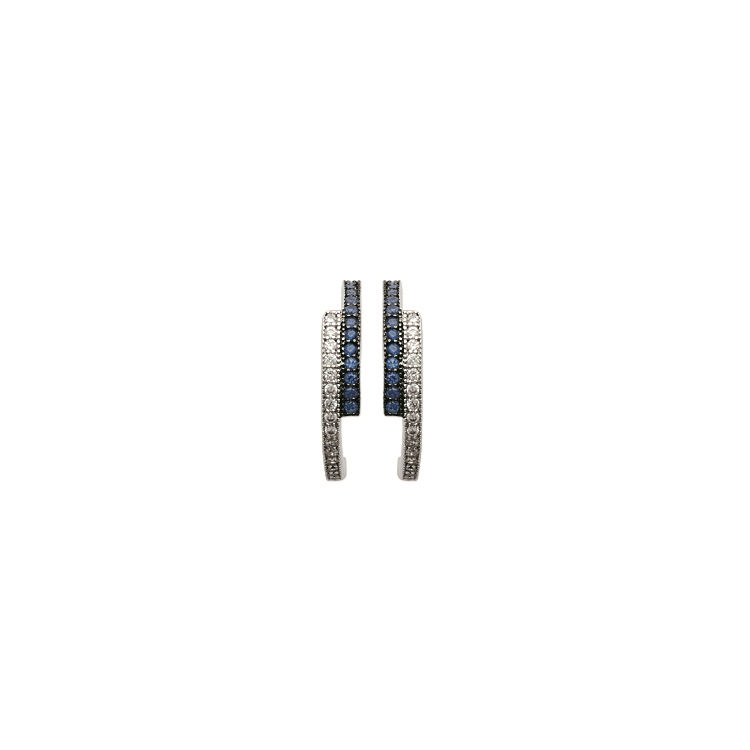 Boucles d'oreilles créoles en argent 925/000 rhodié, oxyde de zirconium et pierres synthétiques.
