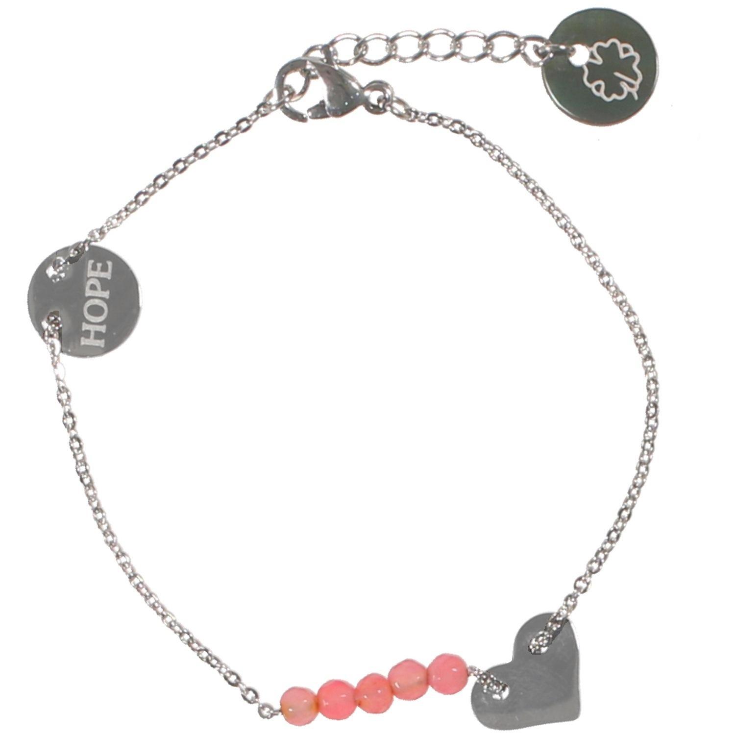 Bracelet en acier argenté, nacre et résine.