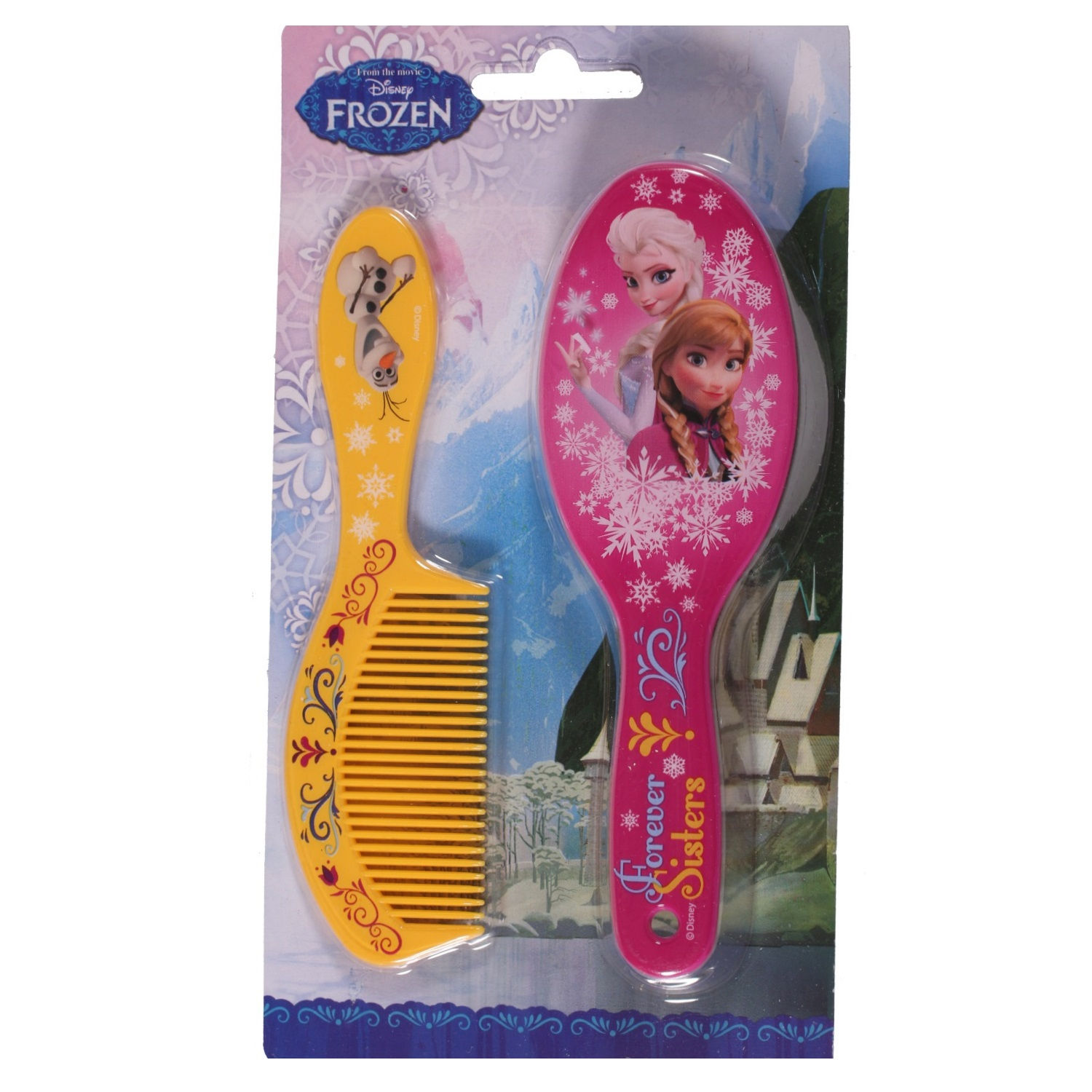 Lot d'un peigne et d'une brosse à cheveux Reine des Neiges en plastique.