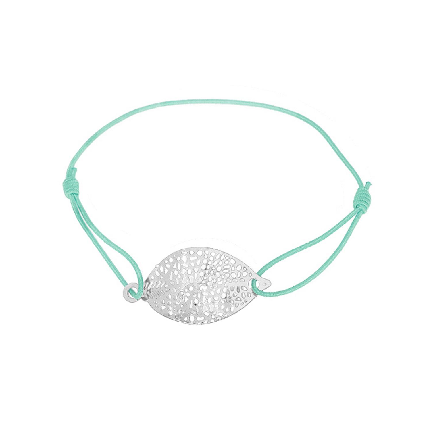 Bracelet en acier argenté et coton.