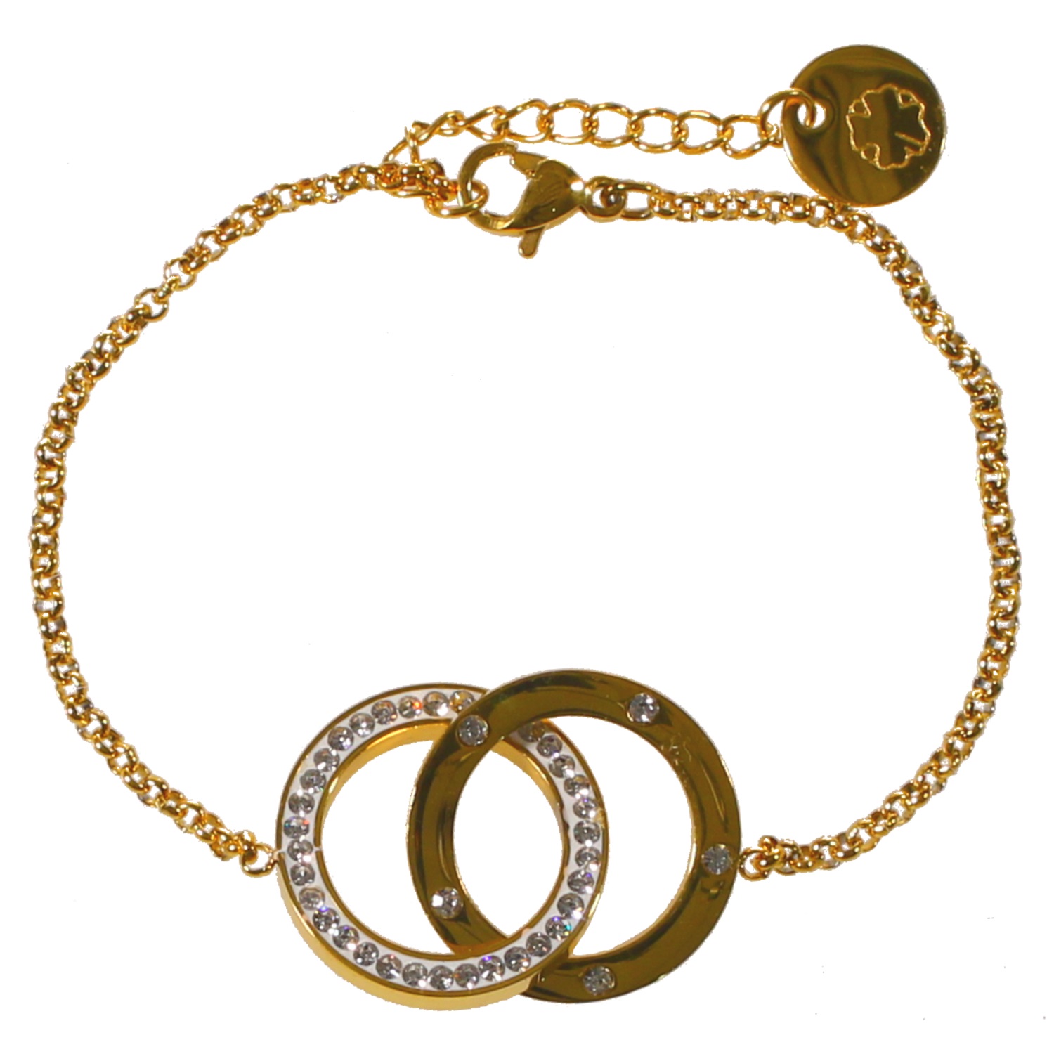 Description Bracelet Anneaux entremêlés en acier doré et cristaux synthétiques. Longueur 15.5+2 cm [Guide des tailles] Largeur 18 mm Matière(s) Acier , Verre . L'acier utilisé dans la bijouterie existe sous plusieurs qualités. Nous utilisons principalement la qualité 316L, qualité qui est utilisée en chirurgie. Cet acier est donc inoxydable et reste très résistant. Fermoir Mousqueton Couleur(s) dominante(s) Doré Public Adolescent , Adulte . Genre Femme , Fille . Saison Indémodable . Cliquez sur une matière, un thème, une couleur ou une collection pour voir tous les articles associés.
