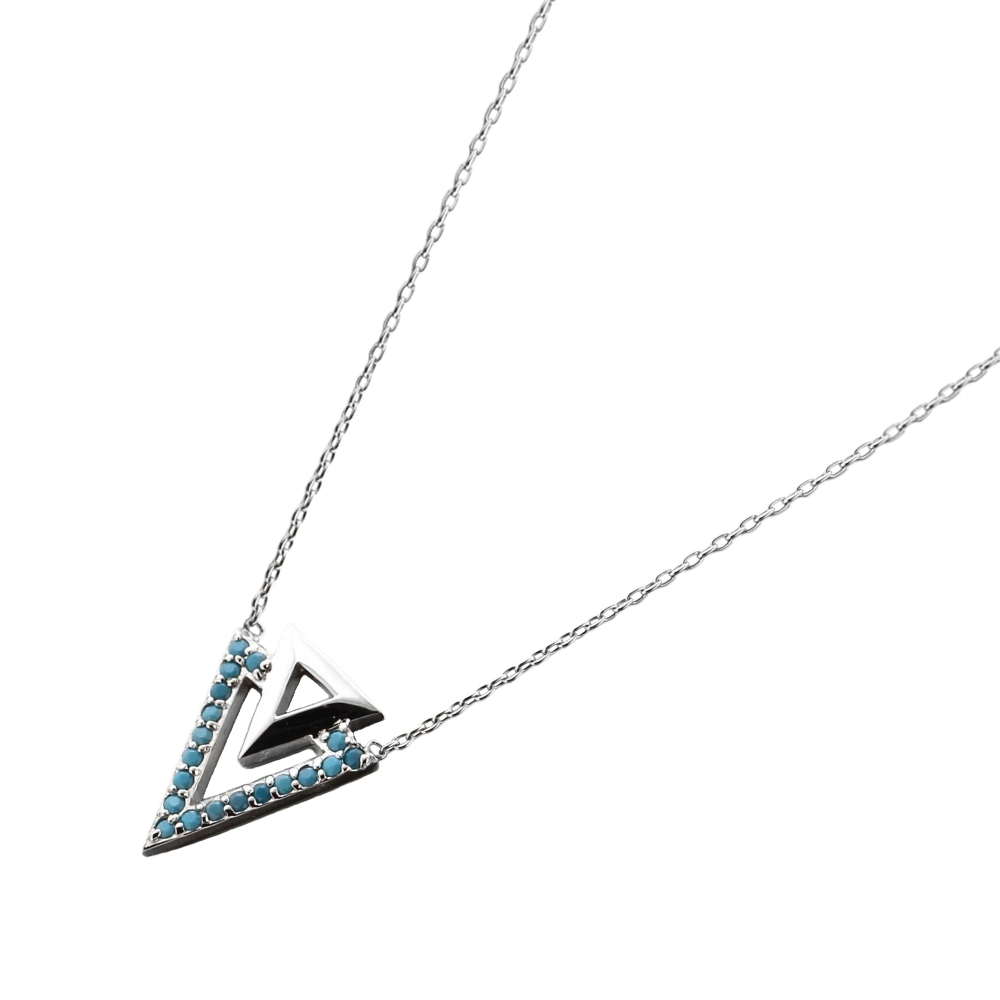 Collier Triangles en argent 925/000 rhodié et pierres d'imitation turquoise.