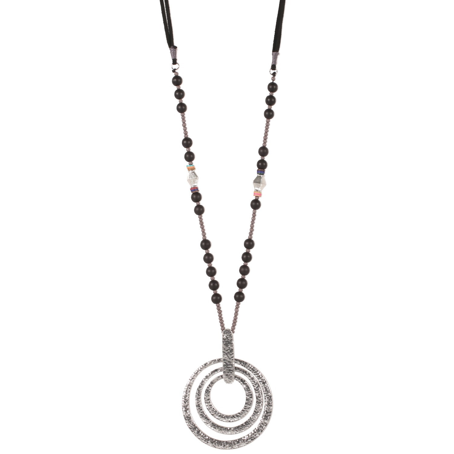Collier sautoir en métal argenté, suédine, caoutchouc et pierres synthétiques. Cercle Perle Rond  Adolescent Adulte Femme Fille Indémodable Collier sautoir en métal argenté, suédine, caoutchouc et pierres synthétiques. Cercle Perle Rond  Adolescent Adulte Femme Fille Indémodable
