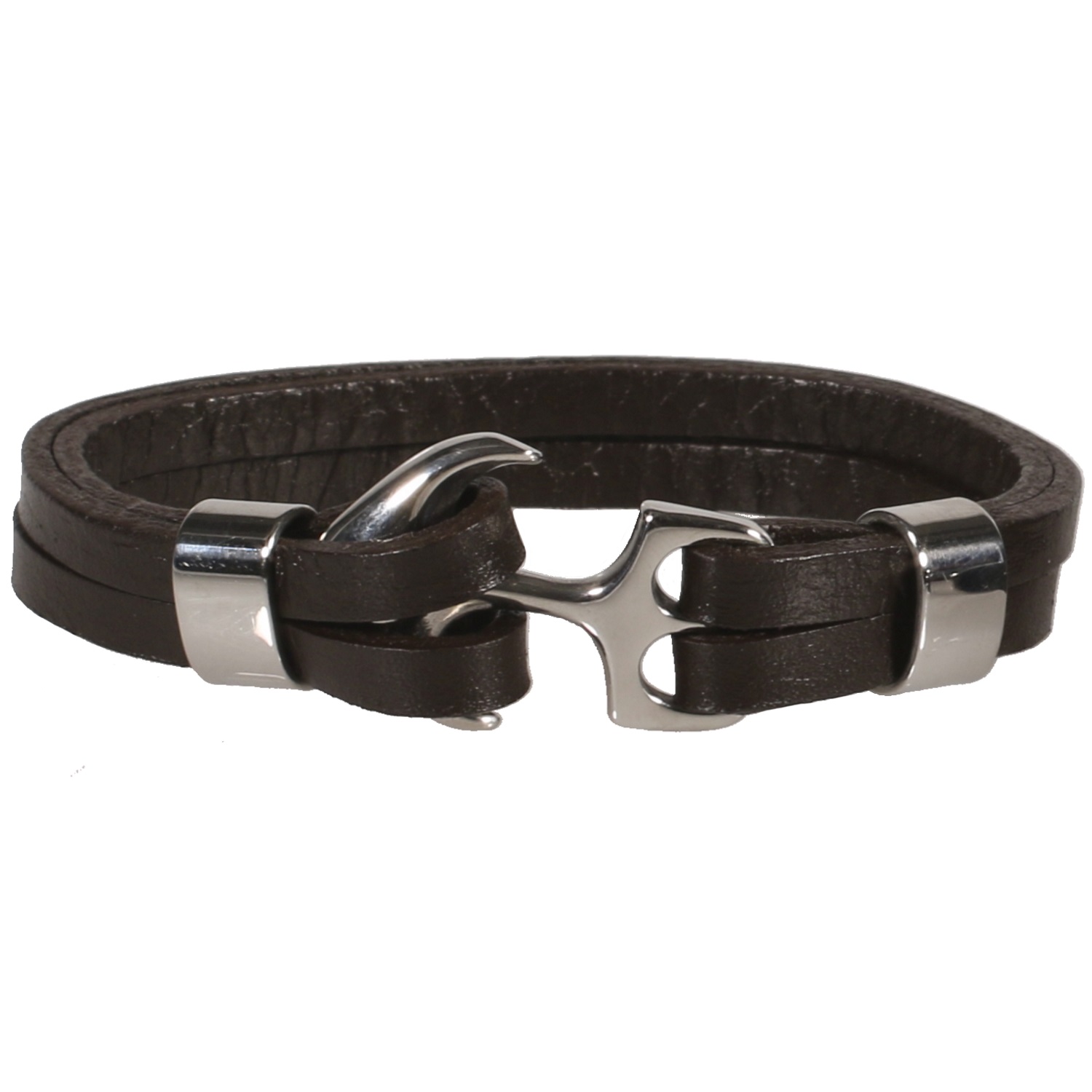 Bracelet Ancre pour homme en cuir marron et acier argenté.