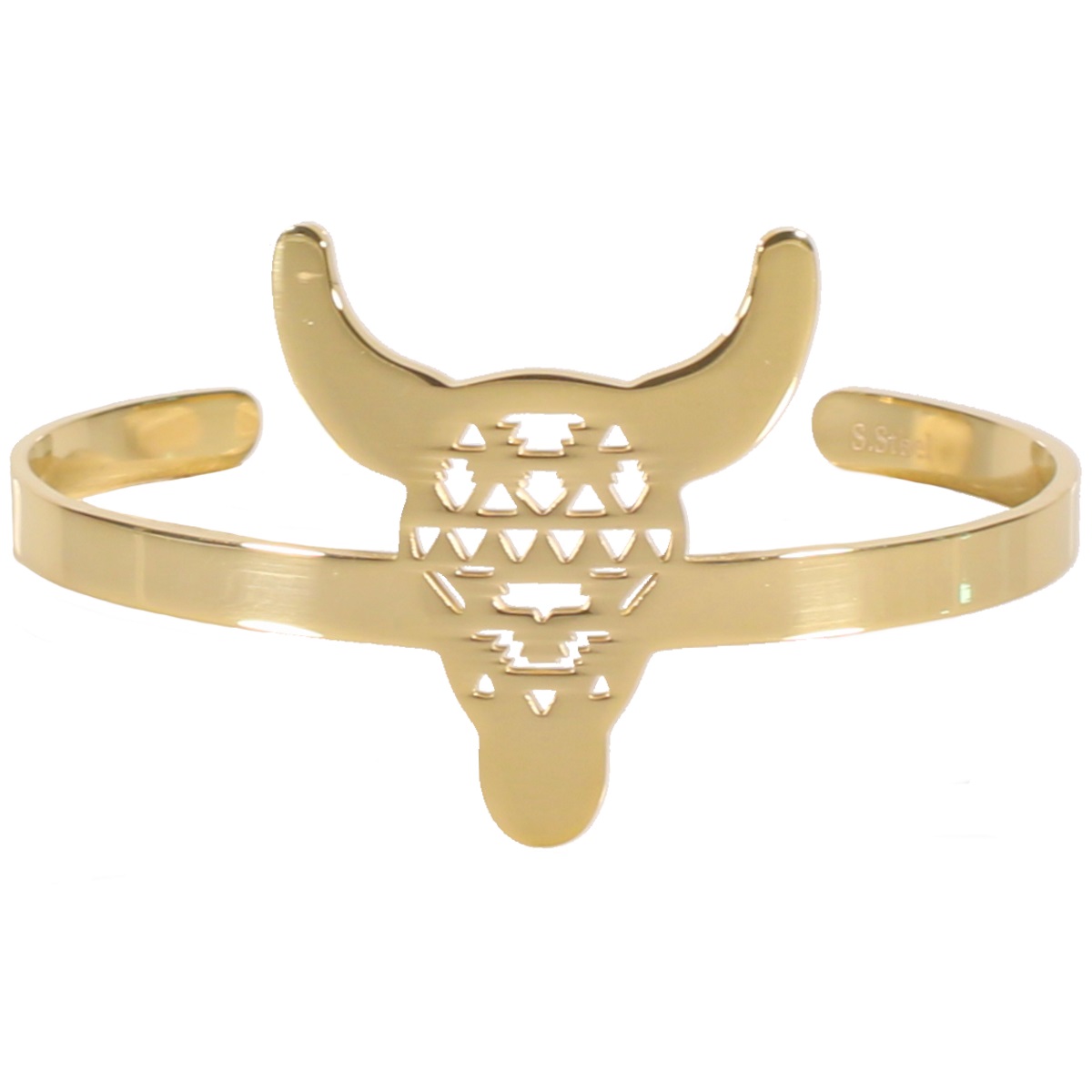 Description Bracelet jonc rigide Tête de taureau en acier doré. Largeur 34 mm Diamètre 58 mm [Guide des tailles] Matière(s) Acier . L'acier utilisé dans la bijouterie existe sous plusieurs qualités. Nous utilisons principalement la qualité 316L, qualité qui est utilisée en chirurgie. Cet acier est donc inoxydable et reste très résistant. Fermoir Aucun Couleur(s) dominante(s) Doré Public Adolescent , Adulte . Genre Femme , Fille . Saison Indémodable . Thème(s) Animaux . Cliquez sur une matière, un thème, une couleur ou une collection pour voir tous les articles associés.