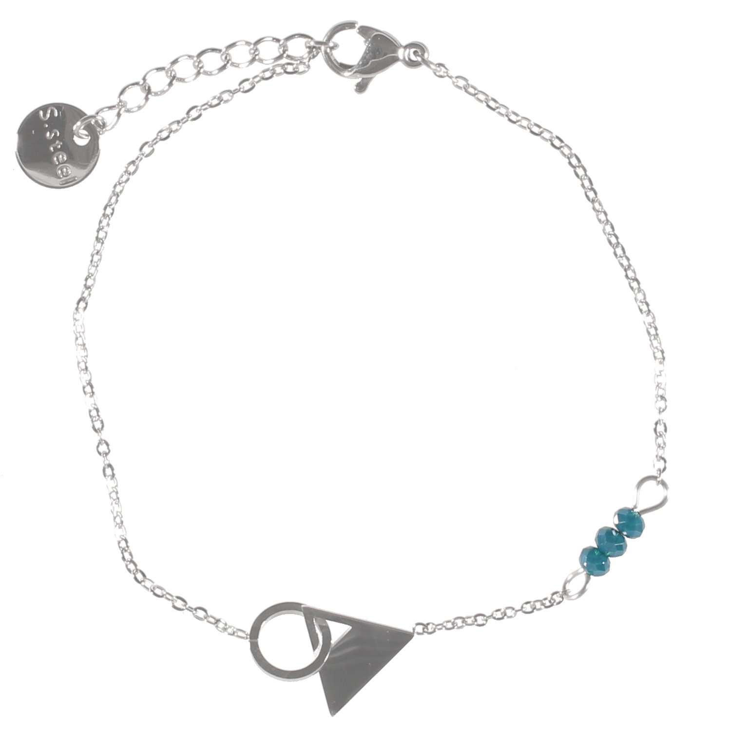 Description Bracelet avec cercle et triangle en acier et pierres de couleur turquoise. Longueur 16.5+2 cm [Guide des tailles] Largeur 10 mm Matière(s) Acier , Rocaille . L'acier utilisé dans la bijouterie existe sous plusieurs qualités. Nous utilisons principalement la qualité 316L, qualité qui est utilisée en chirurgie. Cet acier est donc inoxydable et reste très résistant. Fermoir Mousqueton Couleur(s) dominante(s) Argenté , Bleu Public Adolescent , Adulte . Genre Femme , Fille . Saison Indémodable . Cliquez sur une matière, un thème, une couleur ou une collection pour voir tous les articles associés.
