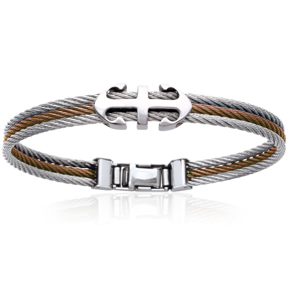 Description Bracelet jonc rigide ancres en acier. Cliquez sur une matière, un thème, une couleur ou une collection pour voir tous les articles associés.