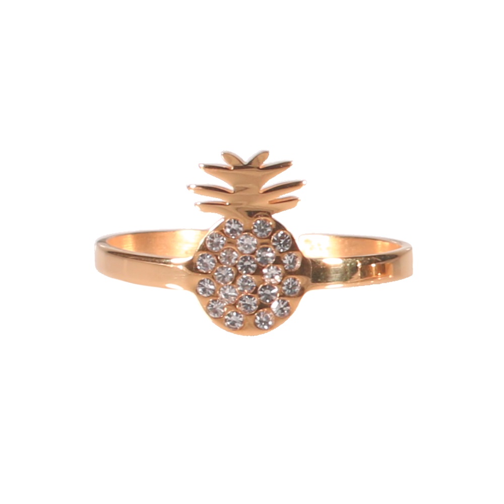Bague ananas en acier rosé et cristaux en verre.