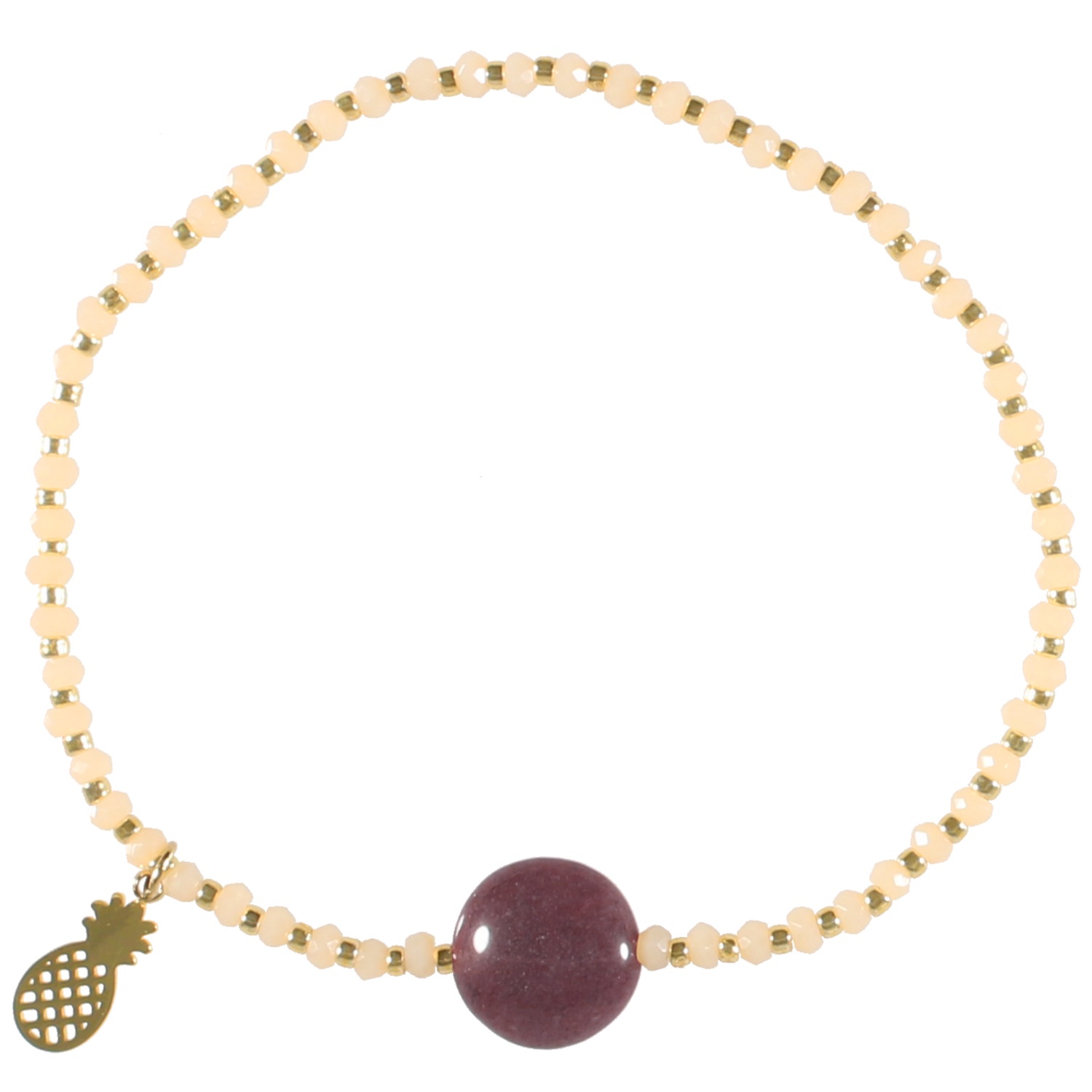 Bracelet élastique avec perles et ananas en acier doré, perles de couleur et pierre ronde.