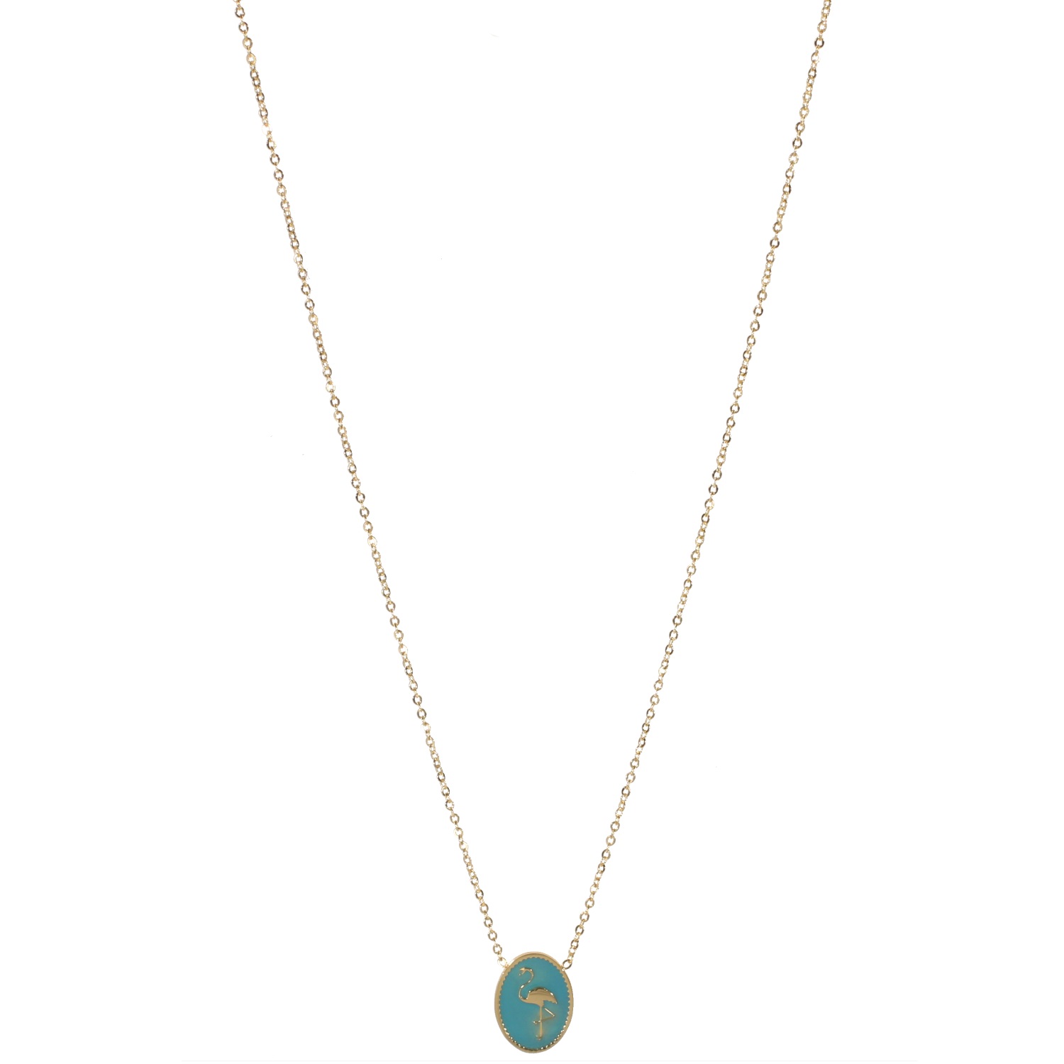 Collier avec pendentif flamant rose en acier 316L doré et émail.