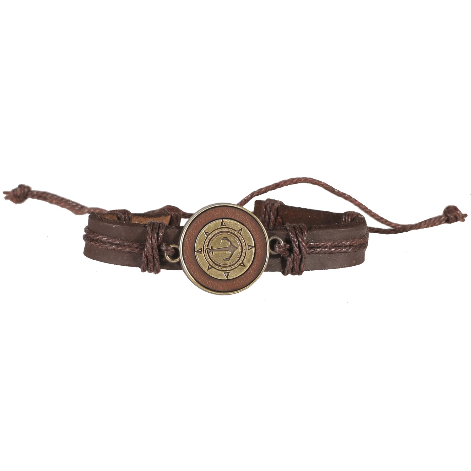 Bracelet pour homme en simili cuir, fil de coton et médaillon avec ancre en métal doré.