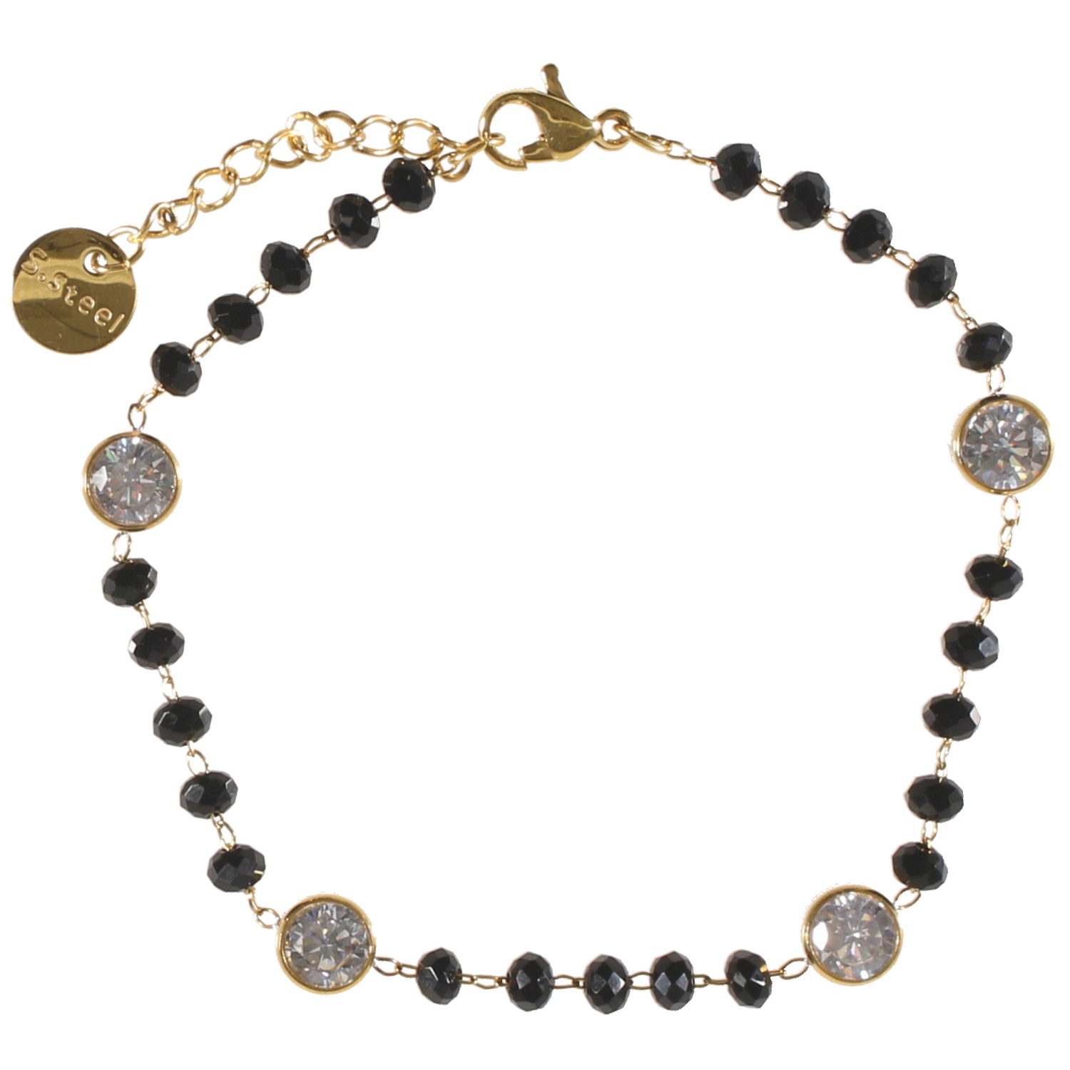 Bracelet en acier doré, perles de couleur et cristaux sertis clos.
