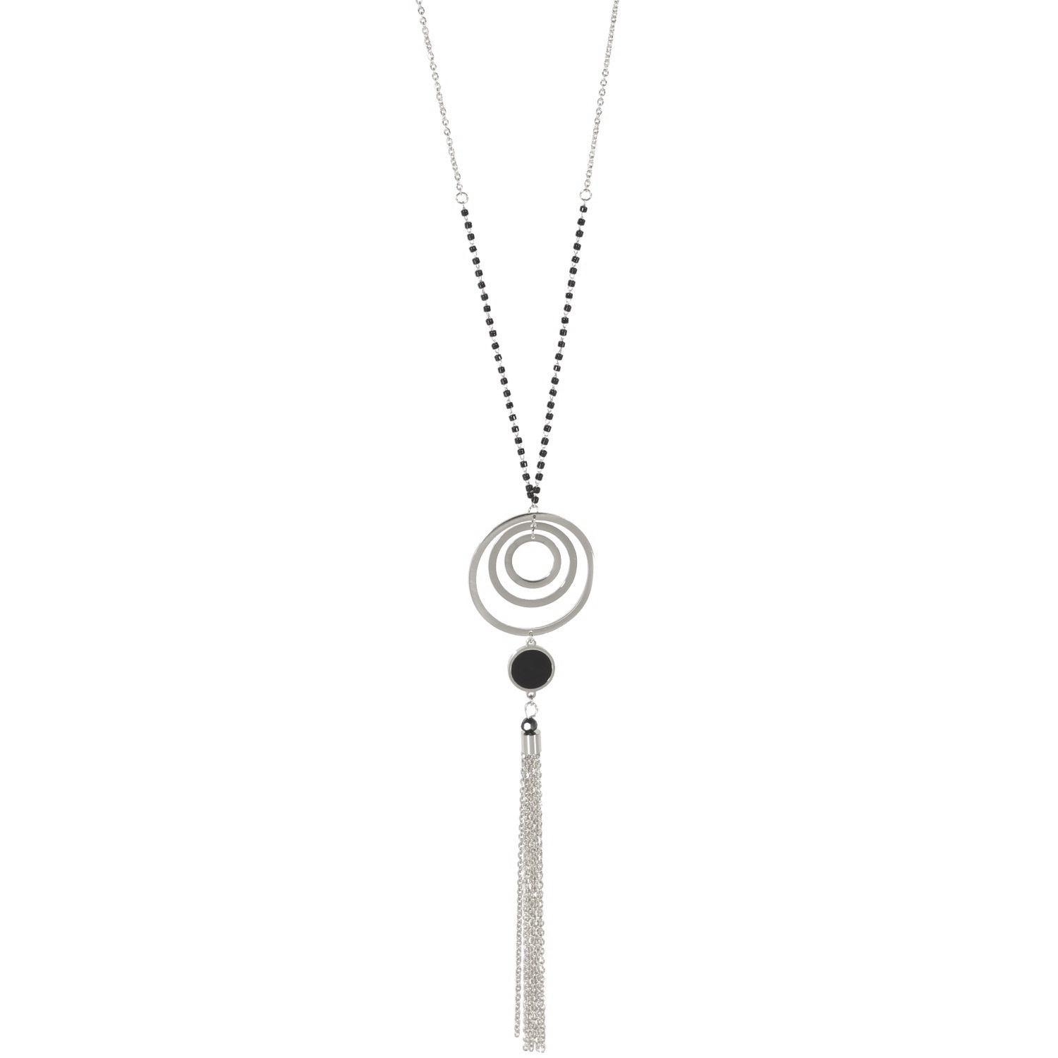Collier sautoir avec pendant multi cercles et pompon en acier argenté, émail et perles de couleur. Cercle Perle Pompon Rond  Adolescent Adulte Femme Fille Indémodable Collier sautoir avec pendant multi cercles et pompon en acier argenté, émail et perles de couleur. Cercle Perle Pompon Rond  Adolescent Adulte Femme Fille Indémodable Collier sautoir avec pendant multi cercles et pompon en acier argenté, émail et perles de couleur. Cercle Perle Pompon Rond  Adolescent Adulte Femme Fille Indémodable