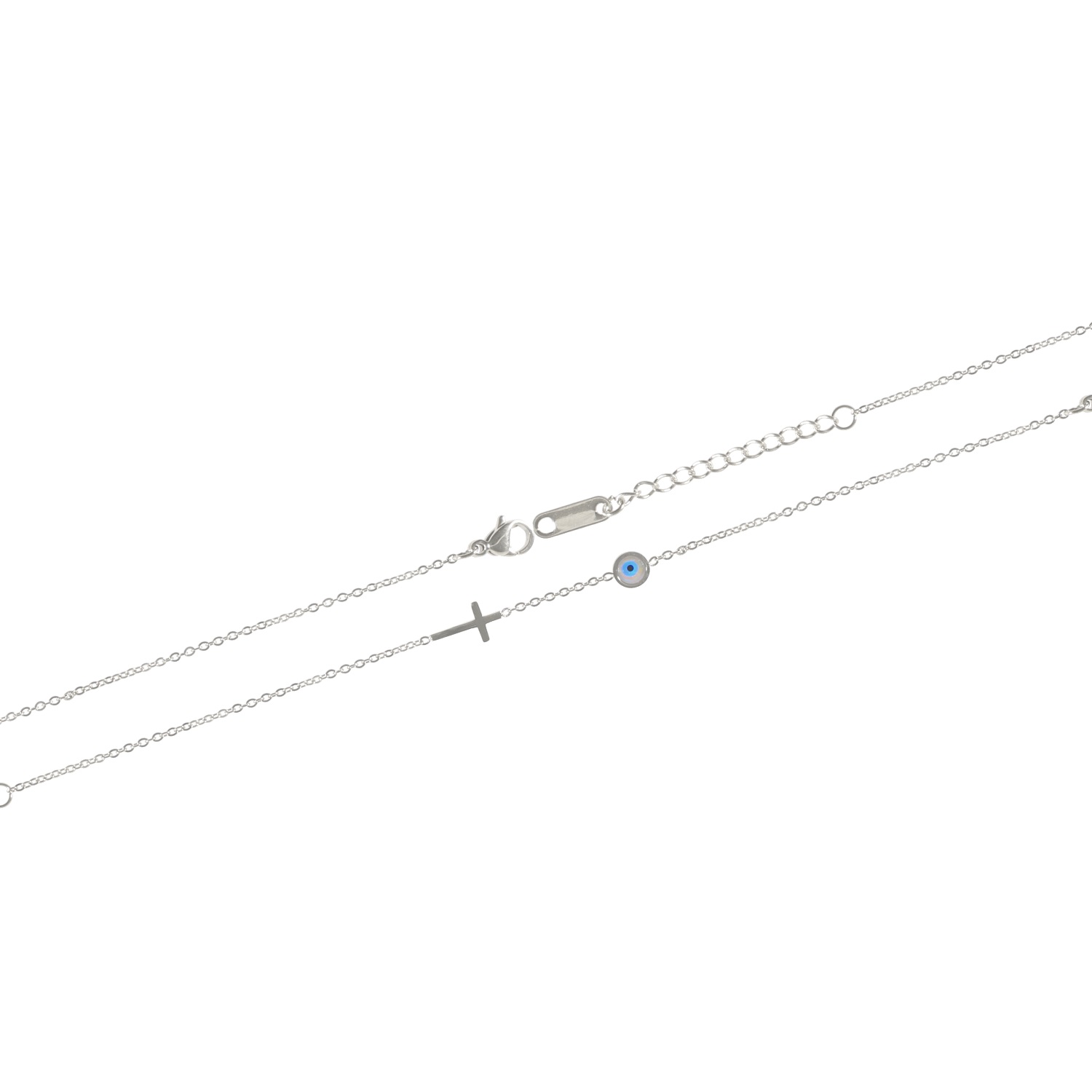 Bracelet avec croix en acier argenté et œil en nacre et émail.