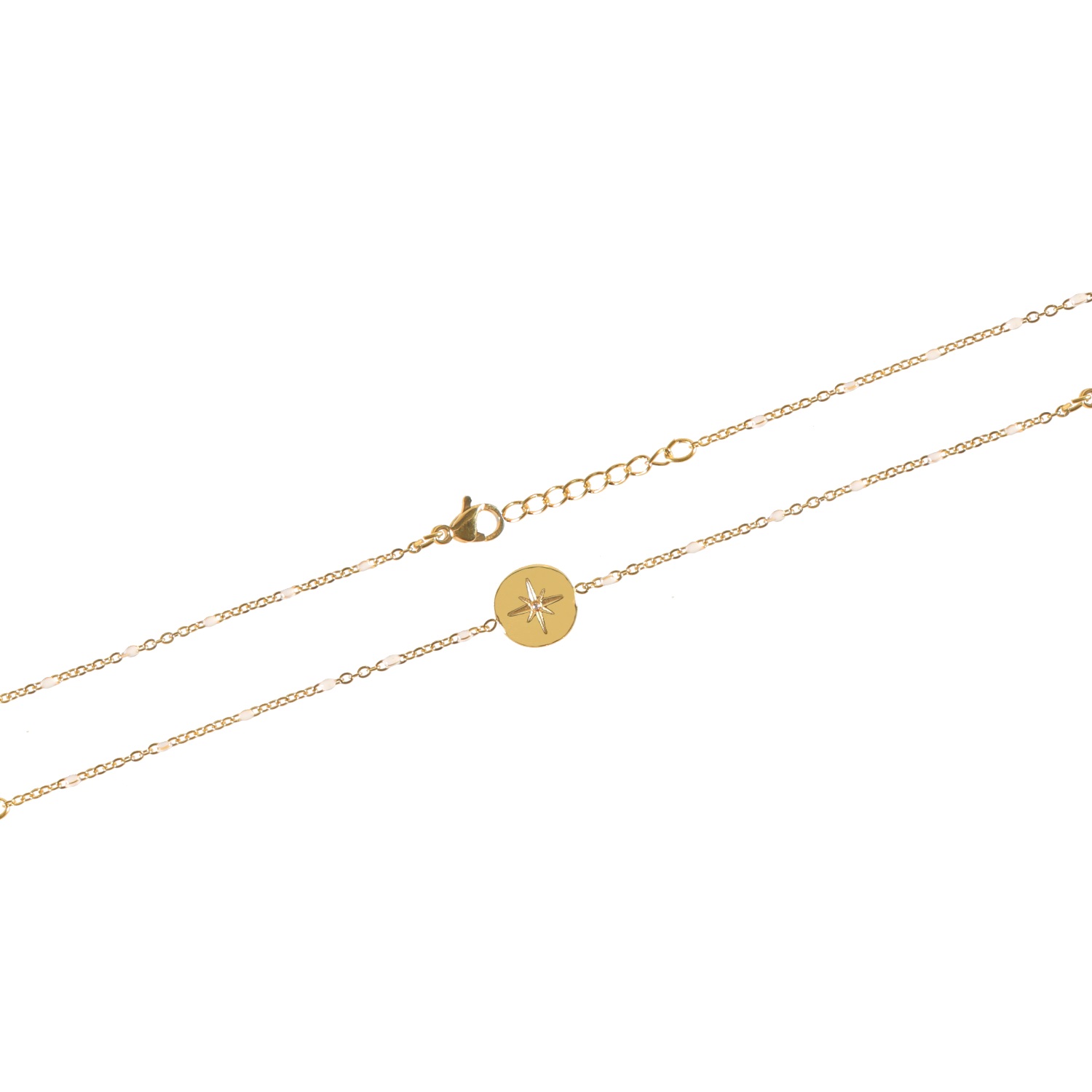 Bracelet avec pastille motif étoile en acier doré et cristal en verre et perles en émail.