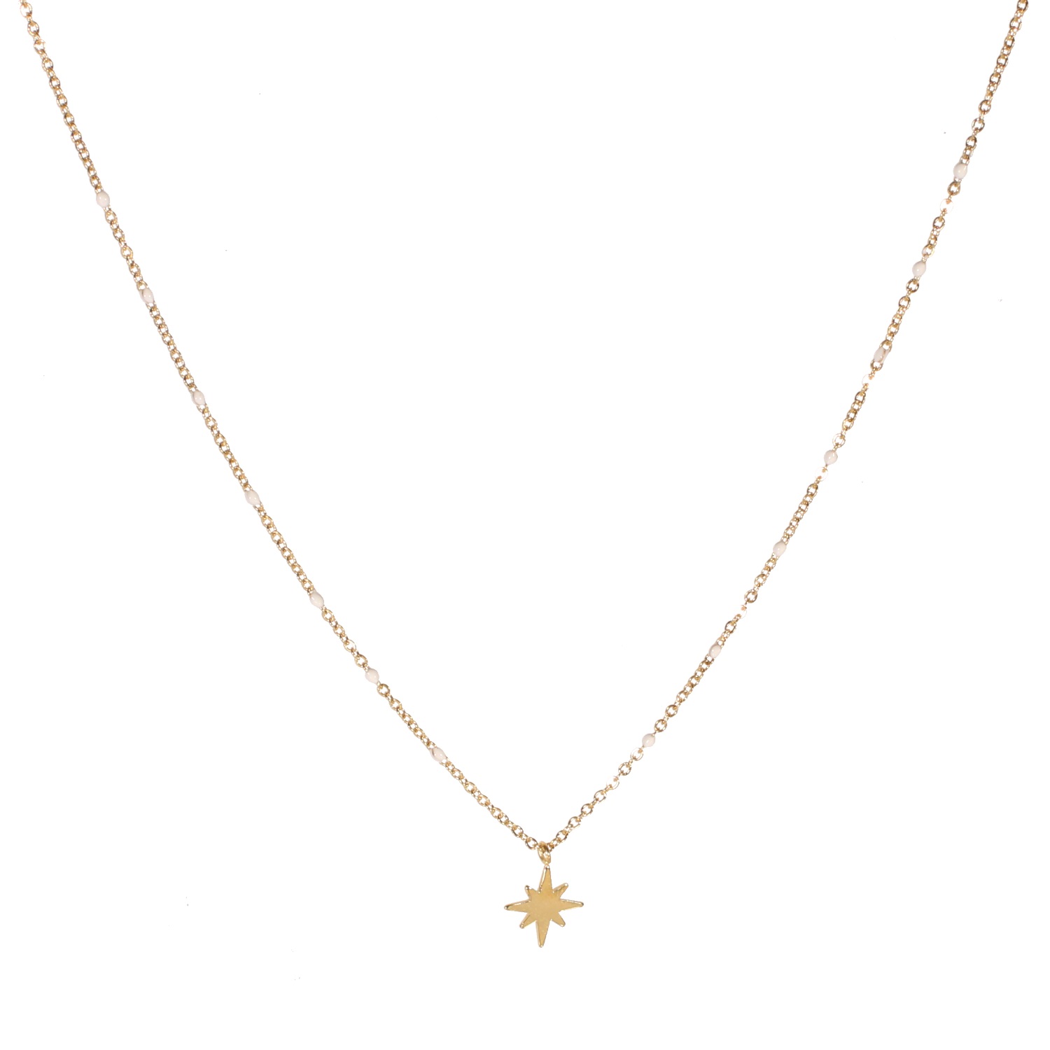Description Collier avec pendentif étoile en acier doré et perles en émail. Cliquez sur une matière, un thème, une couleur ou une collection pour voir tous les articles associés.