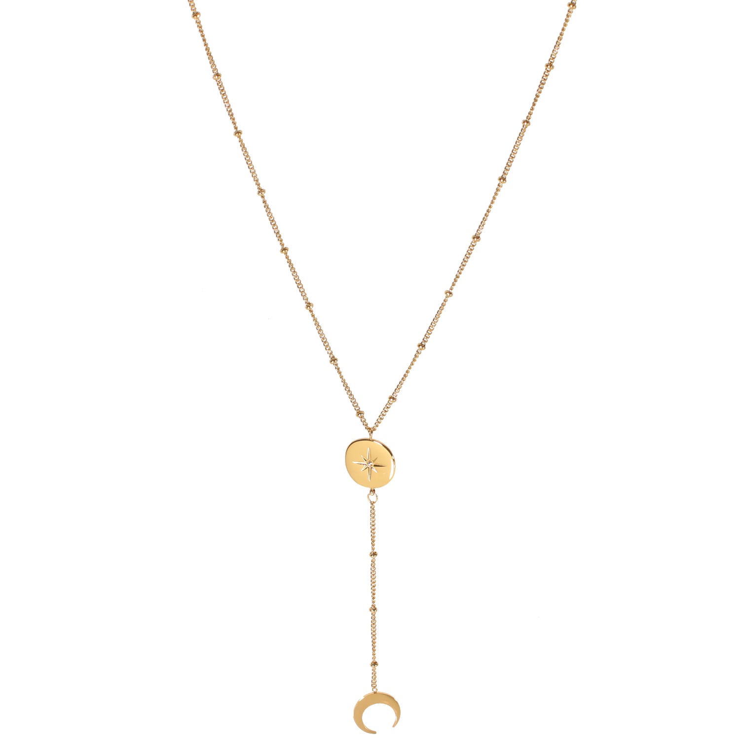 Description Collier en forme Y avec pendentif étoile et croissant de lune en acier doré et un cristal en verre. Longueur 45+4 cm [Guide des tailles] Hauteur 75 mm Matière(s) Acier , Verre . L'acier utilisé dans la bijouterie existe sous plusieurs qualités. Nous utilisons principalement la qualité 316L, qualité qui est utilisée en chirurgie. Cet acier est donc inoxydable et reste très résistant. Fermoir Mousqueton À noter Pendentif étoile 13 mm de diamètre et Croissant de lune 12x11 mm Couleur(s) dominante(s) Doré Public Adolescent , Adulte . Genre Femme , Fille . Saison Indémodable . Thème(s) Nature . Collection Astre sublime Cliquez sur une matière, un thème, une couleur ou une collection pour voir tous les articles associés.