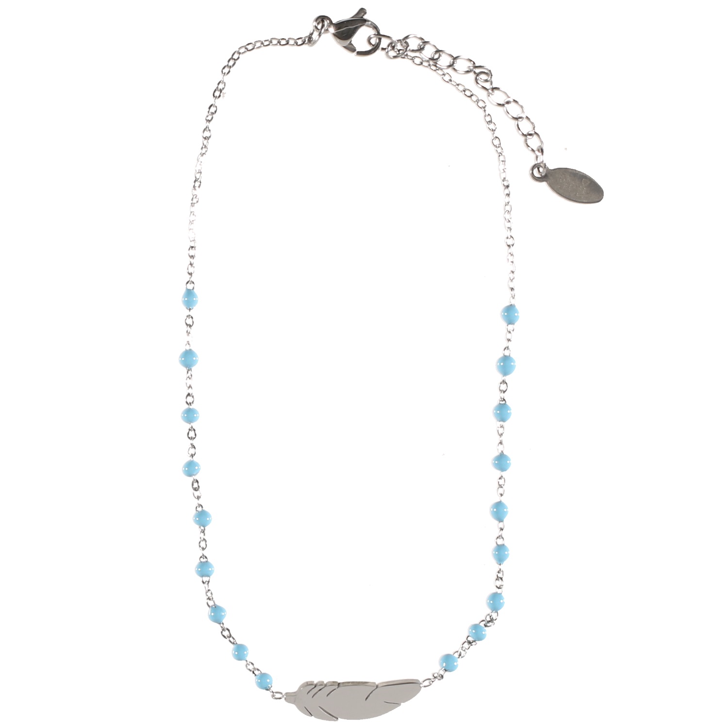 Description Chaîne de cheville avec plume en acier 316L argenté et perles de couleur en émail. Cliquez sur une matière, un thème, une couleur ou une collection pour voir tous les articles associés.