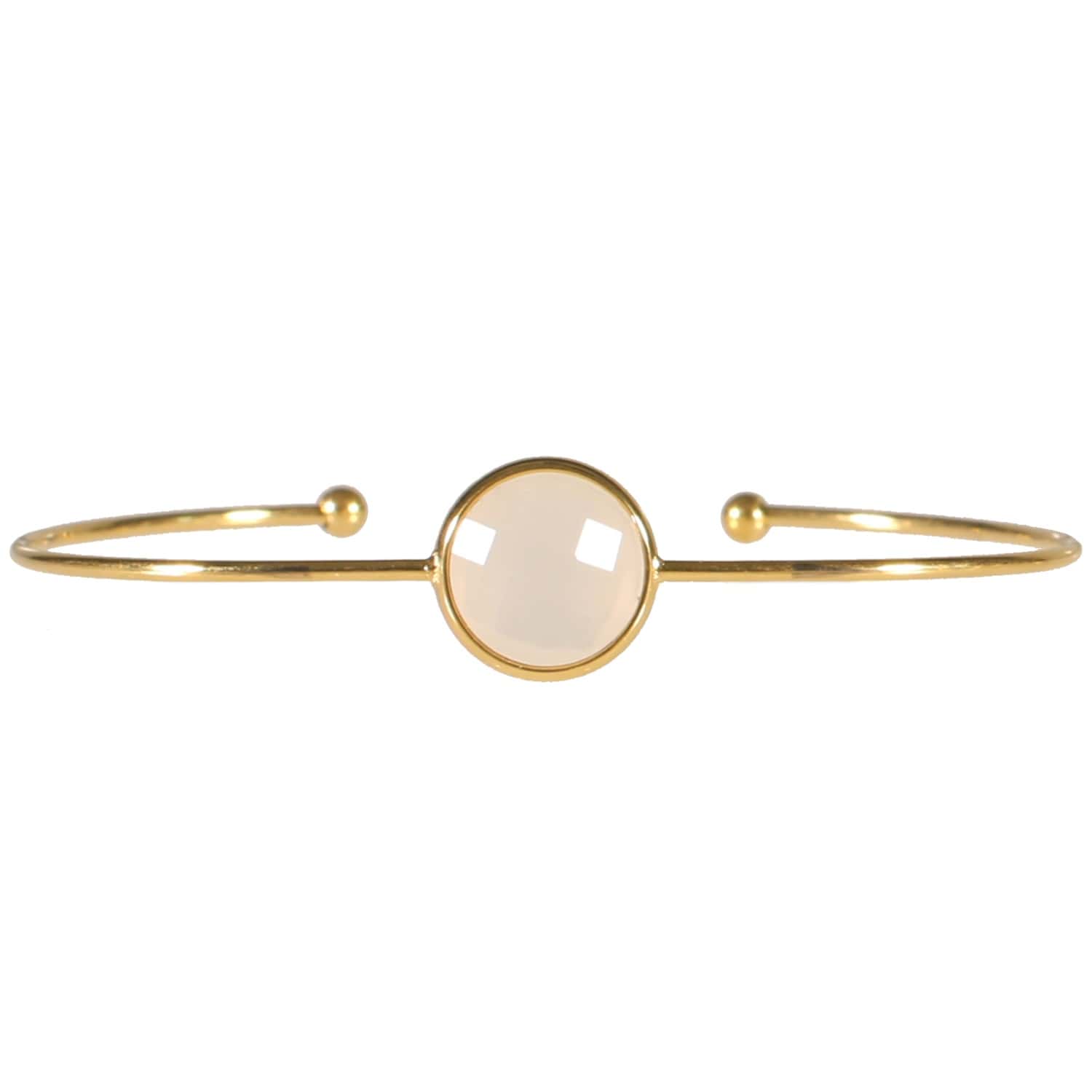 Description Bracelet jonc ouvert en acier doré et solitaire rond en pierre synthétique de couleur blanche. Largeur 12 mm Diamètre 56 mm [Guide des tailles] Matière(s) Acier , Rocaille . L'acier utilisé dans la bijouterie existe sous plusieurs qualités. Nous utilisons principalement la qualité 316L, qualité qui est utilisée en chirurgie. Cet acier est donc inoxydable et reste très résistant. Fermoir Aucun Couleur(s) dominante(s) Blanc , Doré Public Adolescent , Adulte . Genre Femme , Fille . Saison Indémodable . Cliquez sur une matière, un thème, une couleur ou une collection pour voir tous les articles associés.