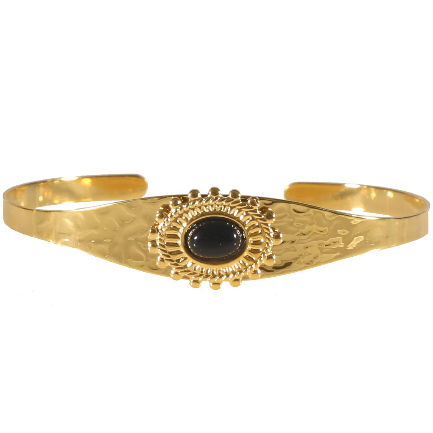 Description Bracelet jonc rigide ouvert effet martelé et pierre ovale de couleur noire. Largeur 14 mm Diamètre 58 mm [Guide des tailles] Matière(s) Acier , Rocaille . L'acier utilisé dans la bijouterie existe sous plusieurs qualités. Nous utilisons principalement la qualité 316L, qualité qui est utilisée en chirurgie. Cet acier est donc inoxydable et reste très résistant. Fermoir Aucun Couleur(s) dominante(s) Doré , Noir Public Adolescent , Adulte . Genre Femme , Fille . Saison Indémodable . Cliquez sur une matière, un thème, une couleur ou une collection pour voir tous les articles associés.