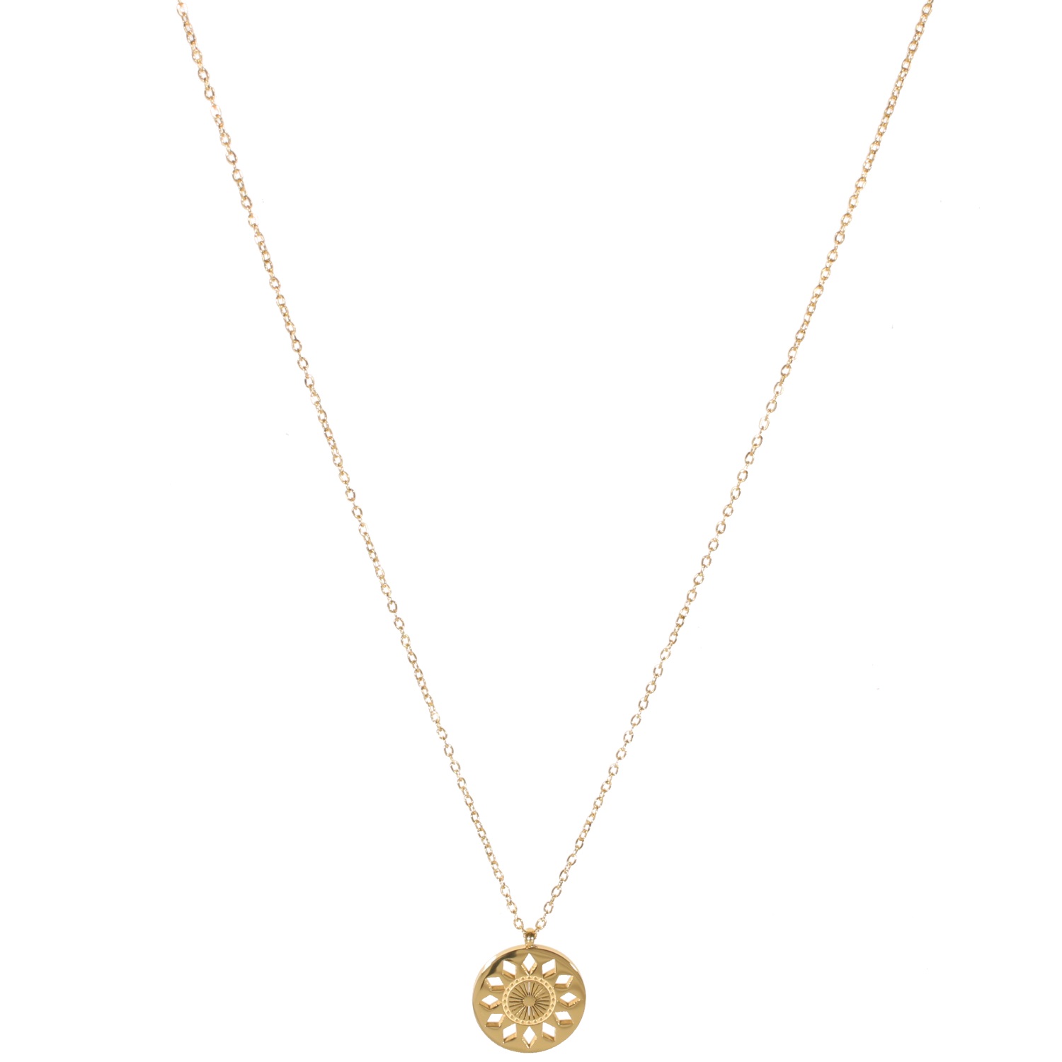 Description Collier composé d'une chaîne et d'un pendentif rond aux motifs ajourés en acier doré. Fermoir mousqueton avec rallonge de 5 cm. Longueur 40+5 cm [Guide des tailles] Matière(s) Acier . L'acier utilisé dans la bijouterie existe sous plusieurs qualités. Nous utilisons principalement la qualité 316L, qualité qui est utilisée en chirurgie. Cet acier est donc inoxydable et reste très résistant. Fermoir Mousqueton À noter Pendentif 15 mm de diamètre Couleur(s) dominante(s) Doré Public Adolescent , Adulte . Genre Femme , Fille . Saison Indémodable . Collection Royale inca Cliquez sur une matière, un thème, une couleur ou une collection pour voir tous les articles associés.