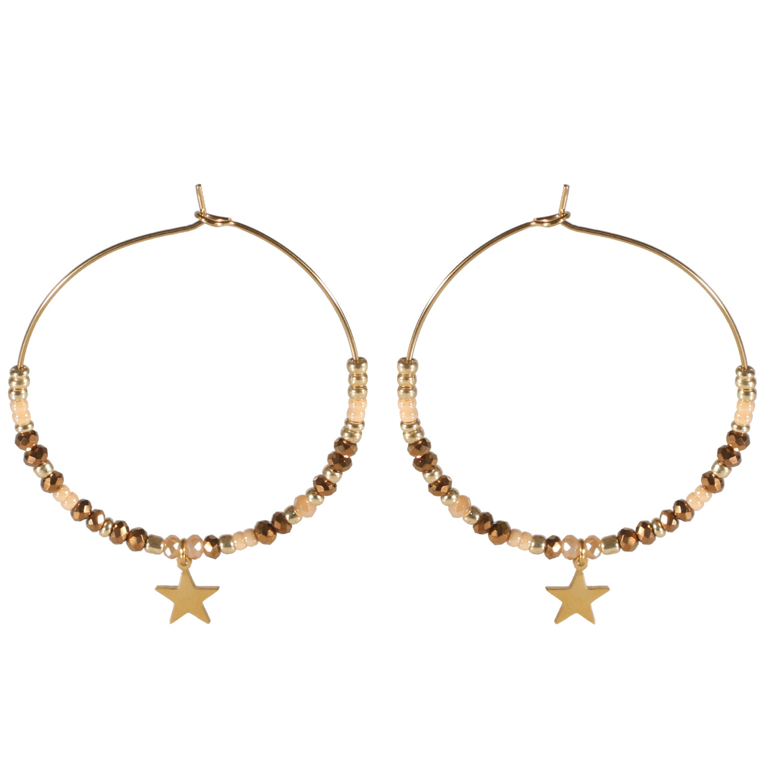 Description Boucles d'oreilles créoles avec étoiles pendantes en acier doré surmontées de perles de couleur. Hauteur 50 mm Diamètre 40 mm Matière(s) Acier , Rocaille . L'acier utilisé dans la bijouterie existe sous plusieurs qualités. Nous utilisons principalement la qualité 316L, qualité qui est utilisée en chirurgie. Cet acier est donc inoxydable et reste très résistant. Fermoir Autre Couleur(s) dominante(s) Doré , Marron Public Adolescent , Adulte . Genre Femme , Fille . Saison Indémodable . Thème(s) Nature . Cliquez sur une matière, un thème, une couleur ou une collection pour voir tous les articles associés.