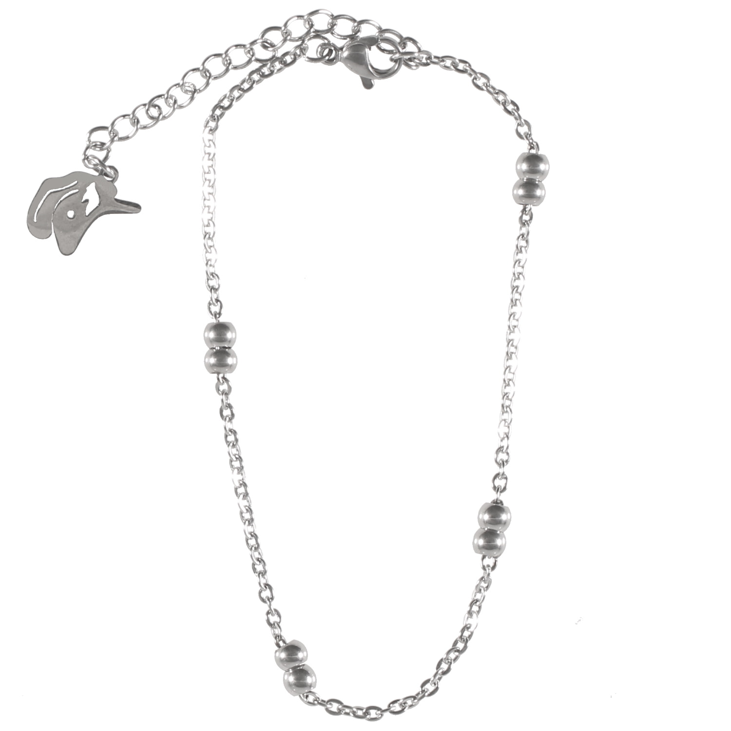 Bracelet chaîne de cheville composé d'une chaîne avec boules en acier argenté.