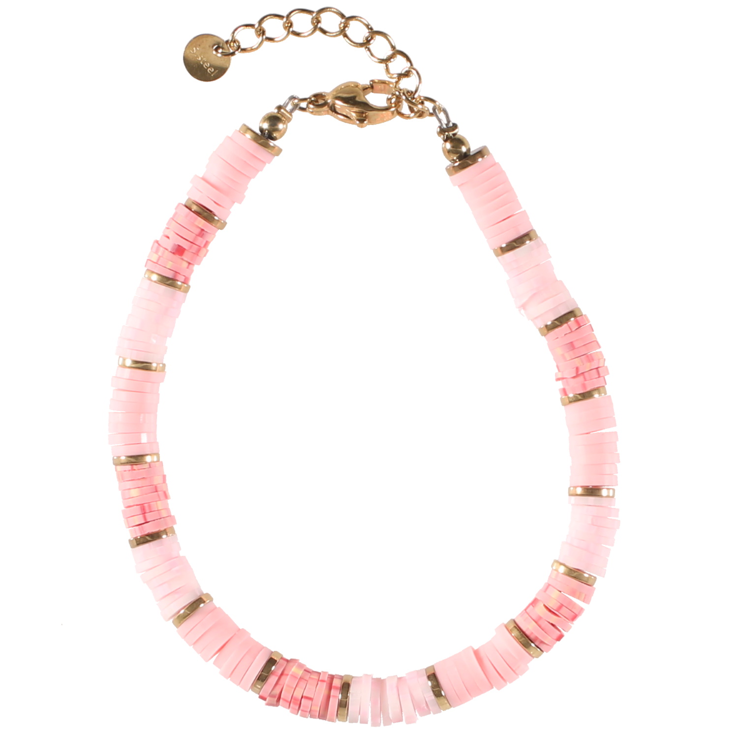 Description Bracelet composé de perles cylindriques heishi en résine synthétique et caoutchouc de couleur. Fermoir mousqueton en acier doré avec une rallonge de 3 cm. Cliquez sur une matière, un thème, une couleur ou une collection pour voir tous les articles associés.