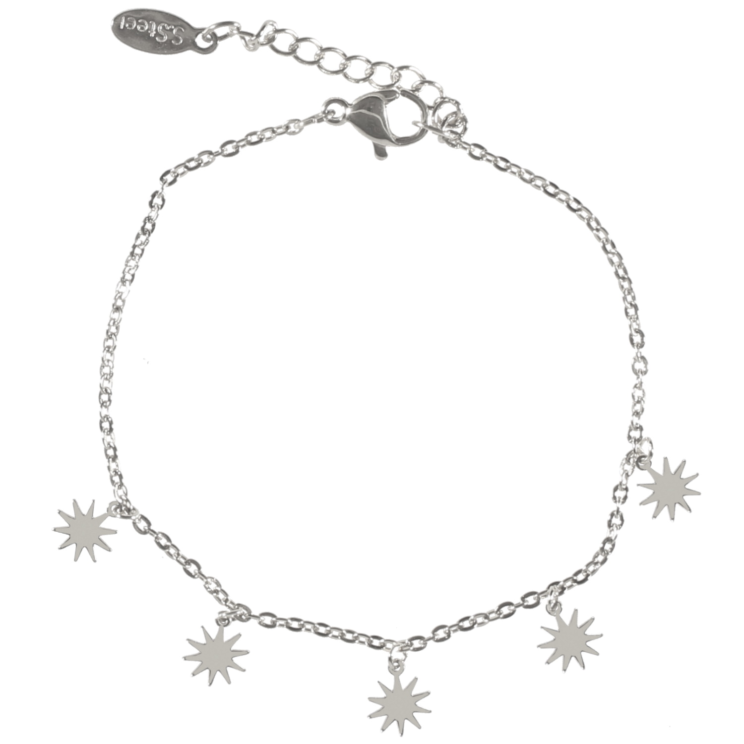 Description Bracelet avec 5 pampilles étoiles en acier 316L argenté. Fermoir mousqueton avec 3 cm de rallonge. Longueur 16+3 cm [Guide des tailles] Largeur 8 mm Matière(s) Acier . L'acier utilisé dans la bijouterie existe sous plusieurs qualités. Nous utilisons principalement la qualité 316L, qualité qui est utilisée en chirurgie. Cet acier est donc inoxydable et reste très résistant. Fermoir Mousqueton Couleur(s) dominante(s) Argenté Public Adolescent , Adulte . Genre Femme , Fille . Saison Indémodable . Thème(s) Nature . Cliquez sur une matière, un thème, une couleur ou une collection pour voir tous les articles associés.
