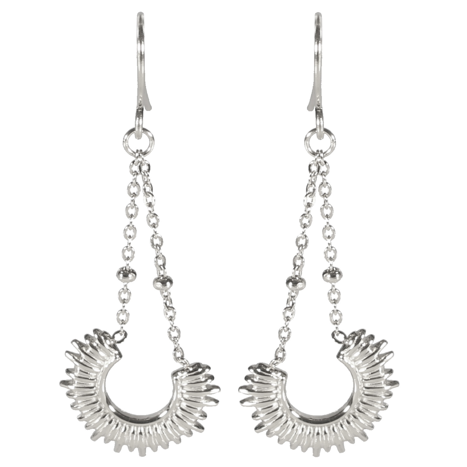 Description Boucles d'oreilles pendantes composées d'une chaîne et d'un cercle ouvert au motif de soleil en acier 316L argenté. Largeur 15 mm Hauteur 44 mm Matière(s) Acier . L'acier utilisé dans la bijouterie existe sous plusieurs qualités. Nous utilisons principalement la qualité 316L, qualité qui est utilisée en chirurgie. Cet acier est donc inoxydable et reste très résistant. Fermoir Crochets Couleur(s) dominante(s) Argenté Public Adolescent , Adulte . Genre Femme , Fille . Saison Indémodable . Thème(s) Nature . Cliquez sur une matière, un thème, une couleur ou une collection pour voir tous les articles associés.