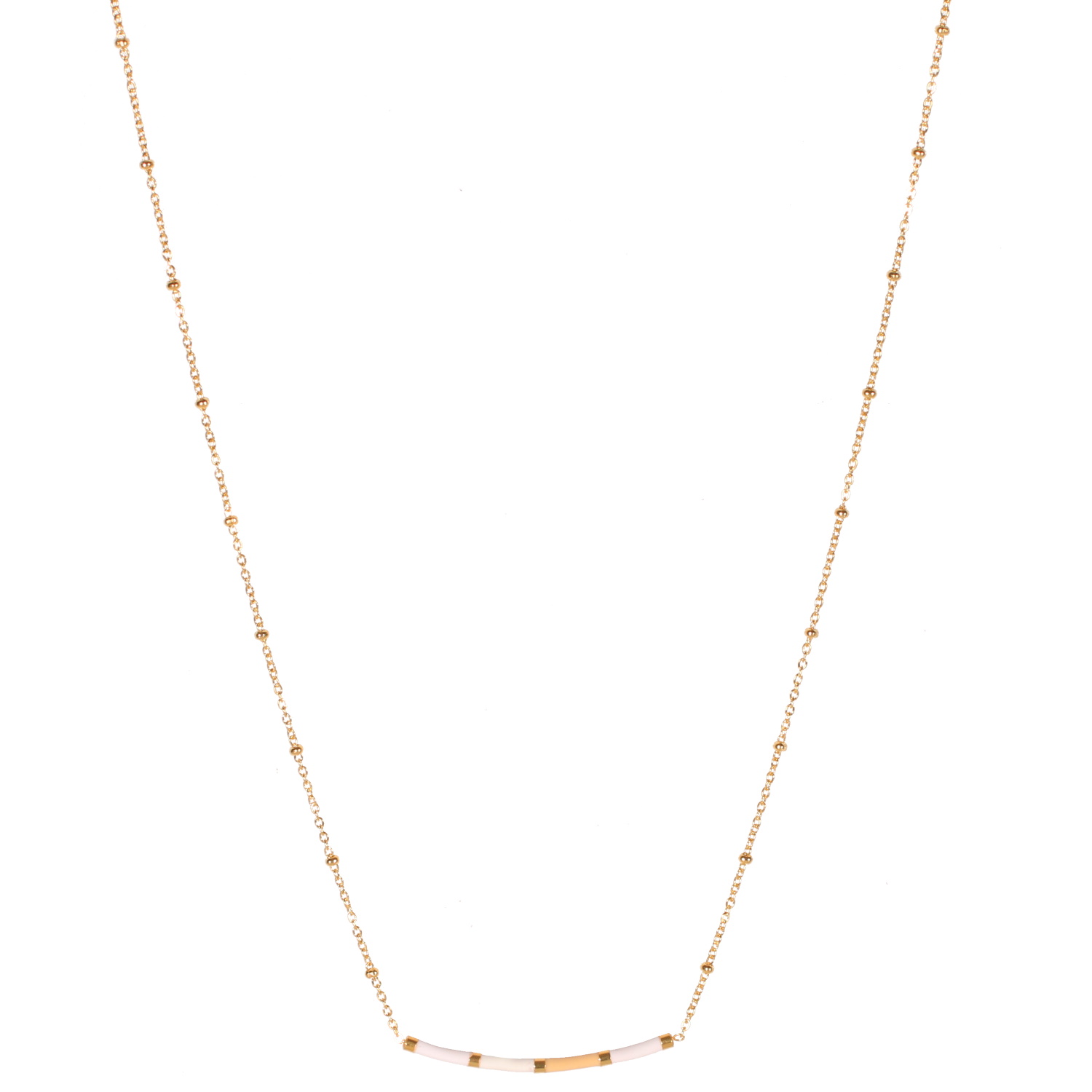 Description Collier composé d'une chaîne en acier doré et de perles cylindriques en matière synthétique de couleur. Fermoir mousqueton avec 5 cm de rallonge. Longueur 41+5 cm [Guide des tailles] Largeur 2 mm Matière(s) Acier , Résine . L'acier utilisé dans la bijouterie existe sous plusieurs qualités. Nous utilisons principalement la qualité 316L, qualité qui est utilisée en chirurgie. Cet acier est donc inoxydable et reste très résistant. Fermoir Mousqueton Couleur(s) dominante(s) Blanc , Doré Public Adolescent , Adulte . Genre Femme , Fille . Saison Indémodable . Cliquez sur une matière, un thème, une couleur ou une collection pour voir tous les articles associés.