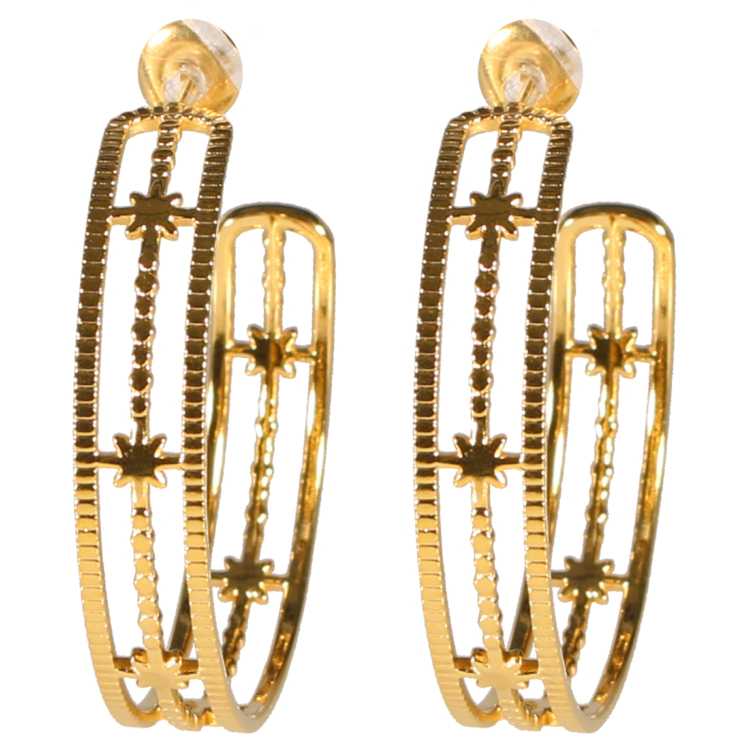 Description Boucles d'oreilles créoles ouvertes avec motifs d'étoiles en acier doré. Largeur 7 mm Diamètre 35 mm [Guide des tailles] Matière(s) Acier . L'acier utilisé dans la bijouterie existe sous plusieurs qualités. Nous utilisons principalement la qualité 316L, qualité qui est utilisée en chirurgie. Cet acier est donc inoxydable et reste très résistant. Fermoir Tiges poussettes Couleur(s) dominante(s) Doré Public Adolescent , Adulte . Genre Femme , Fille . Saison Indémodable . Thème(s) Nature . Collection Astre sublime Cliquez sur une matière, un thème, une couleur ou une collection pour voir tous les articles associés.