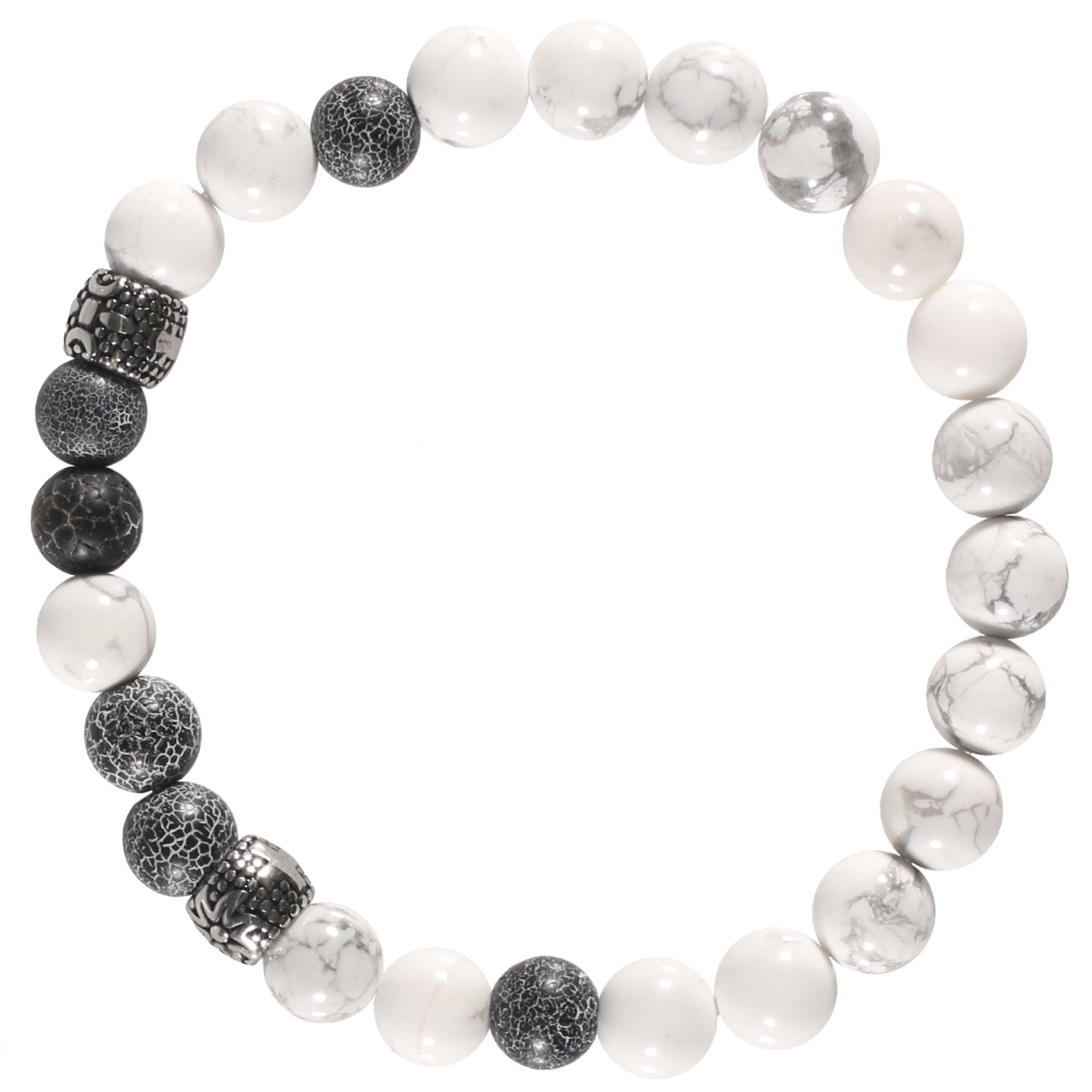Description Bracelet élastique pour homme composé de perles de couleur noire, grise et blanche et perles cylindriques en acier argenté. Cliquez sur une matière, un thème, une couleur ou une collection pour voir tous les articles associés.